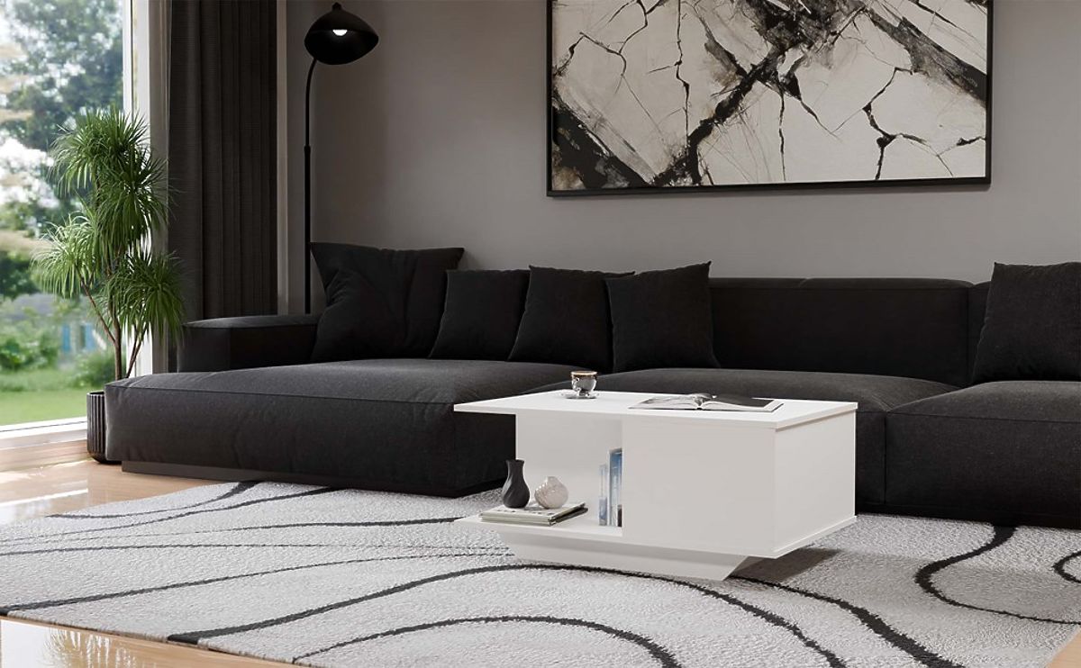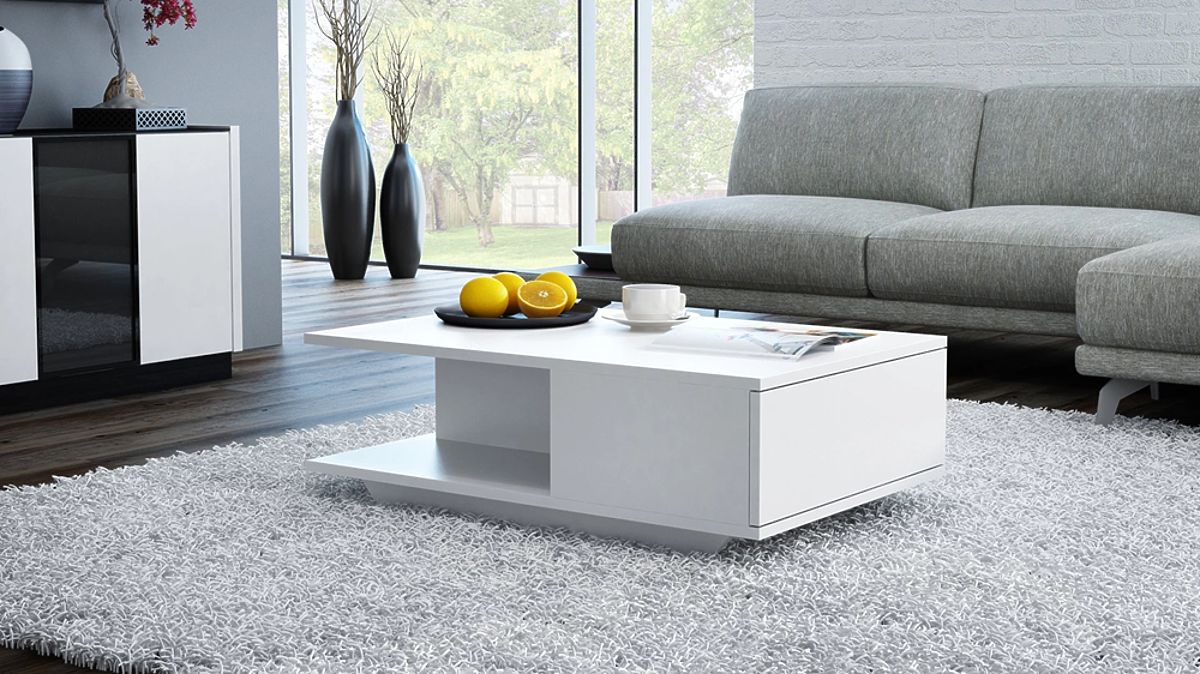 Moderan bijeli stolić s prostranim prostorom za pohranu. .. više