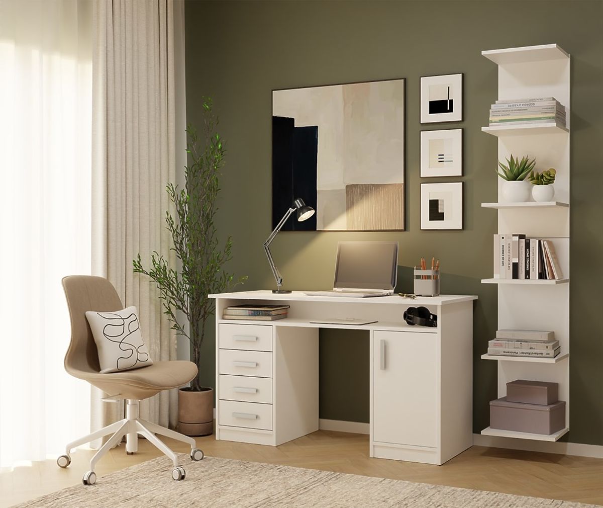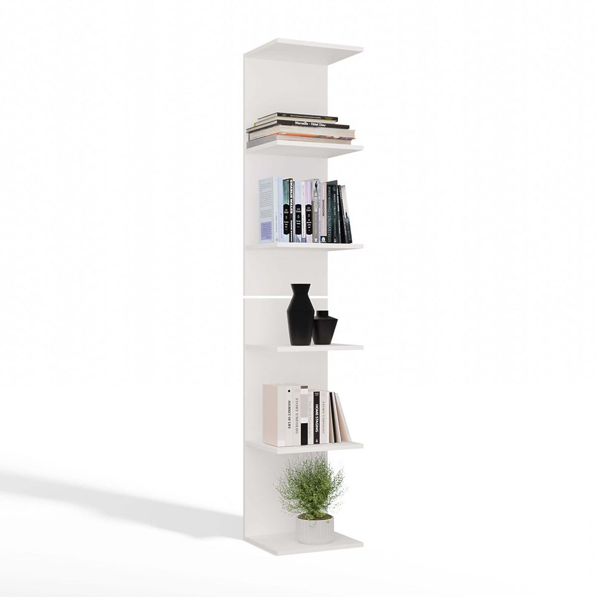 Polica 6P je minimalistički i funkcionalni namještaj, koji se odlično uklapa u dnevni boravak, ured, studentsku sobu ili kućnu knjižnicu. Zahvaljujući laganom, modernom obliku i neutralnoj bijeloj boji, lako se prilagođava mnogim interijerima.