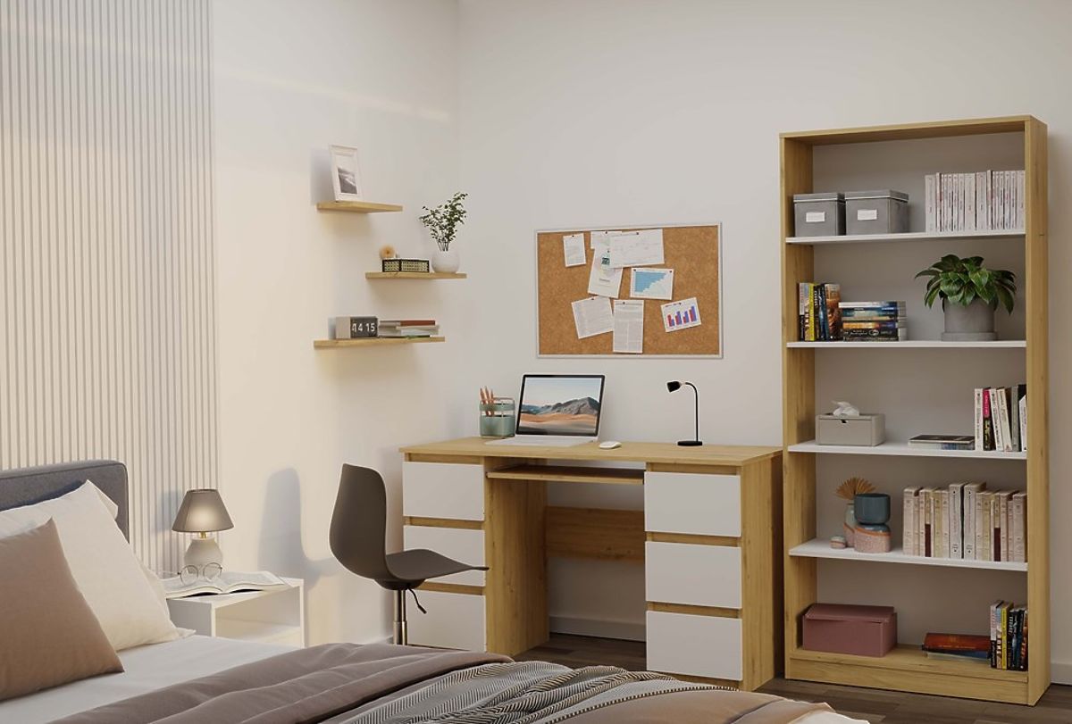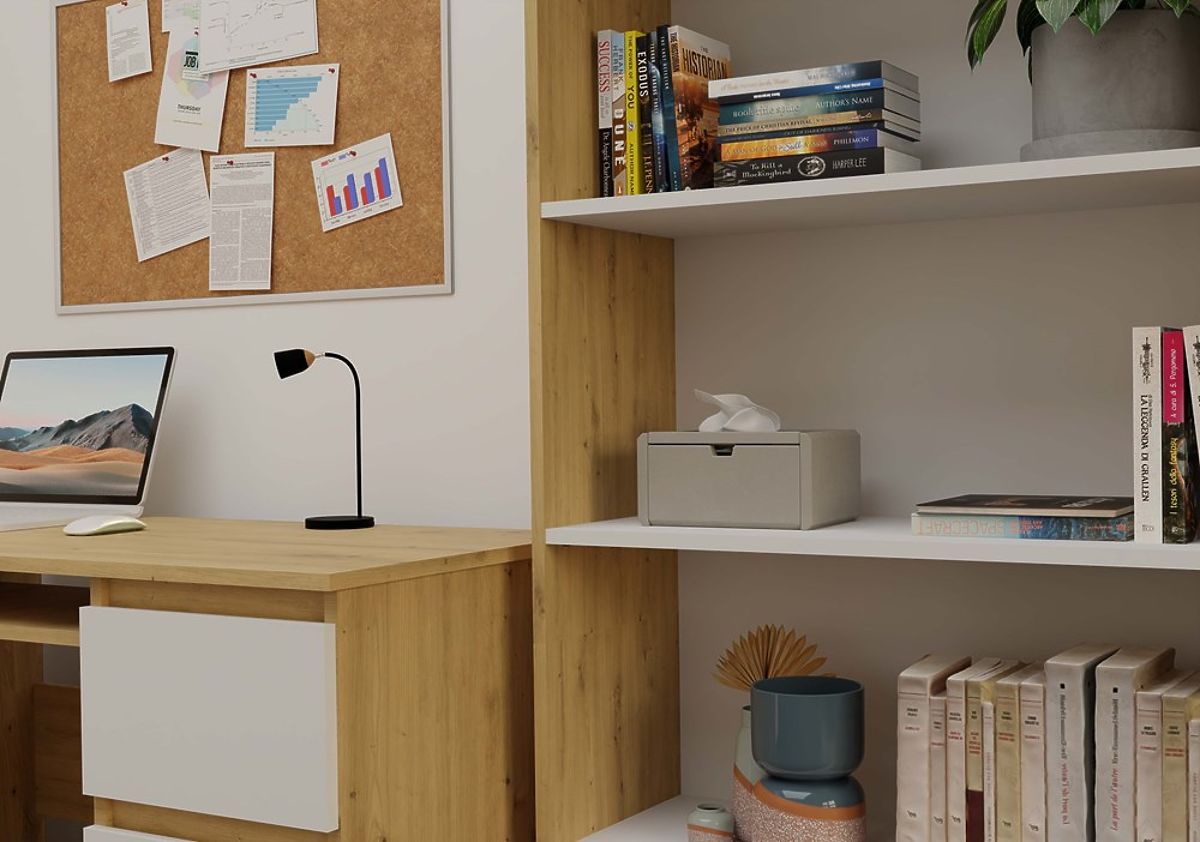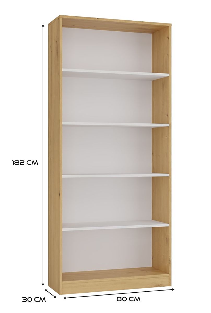 Polica R80 za knjige i dekoracije u hrastu i bijeloj boji. .. više