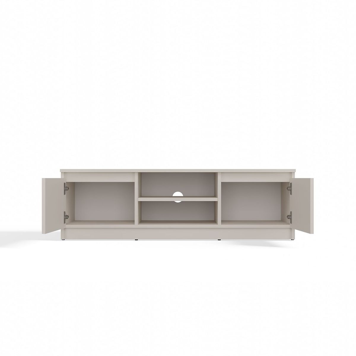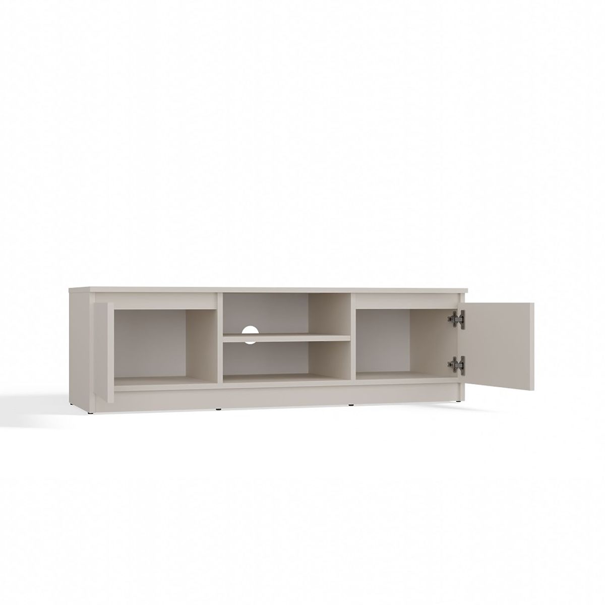 Otvorena polica omogućuje udobno postavljanje TV uređaja, a otvor na njenom stražnjem dijelu olakšava diskretnu montažu kablova.