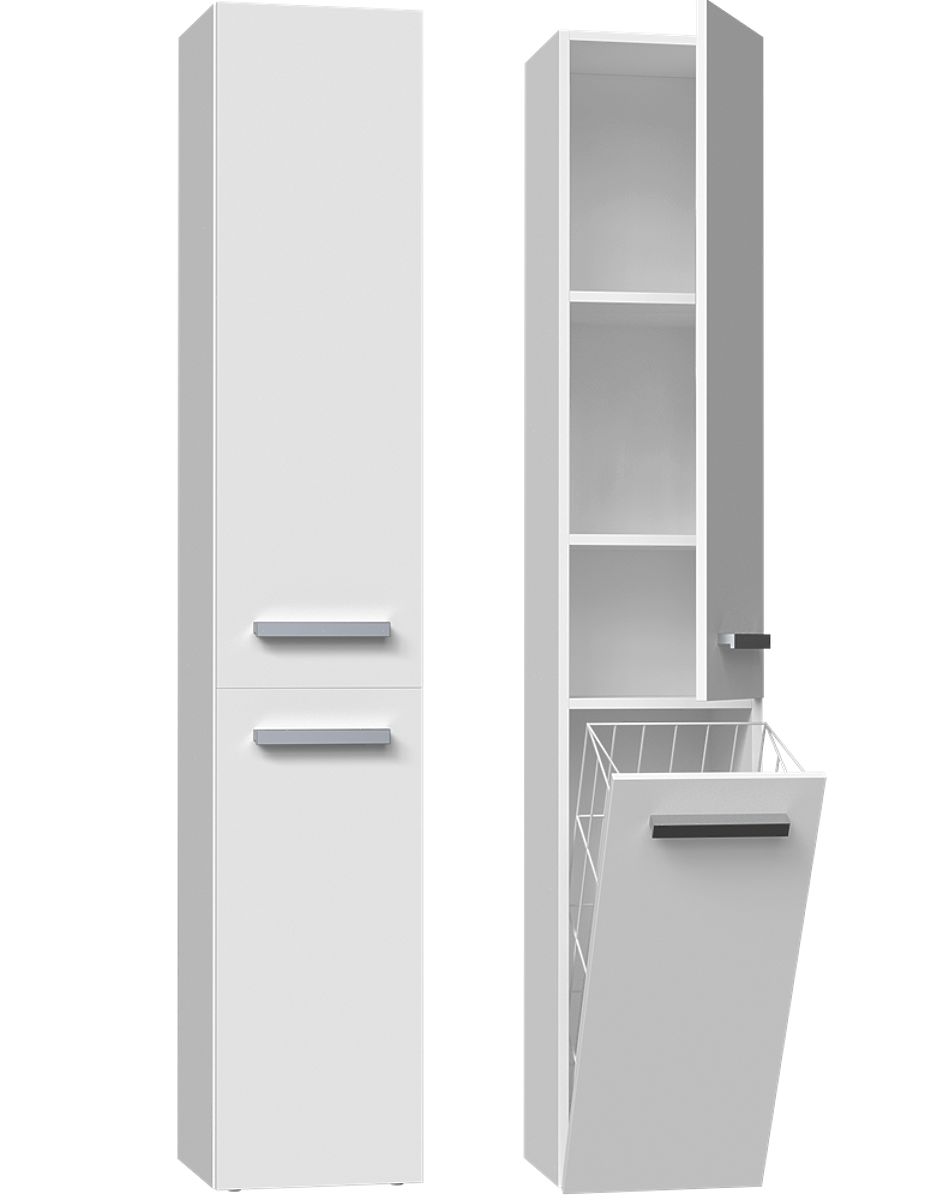 Praktični kupaonski ormarić s dugim vratima i košarom. .. više