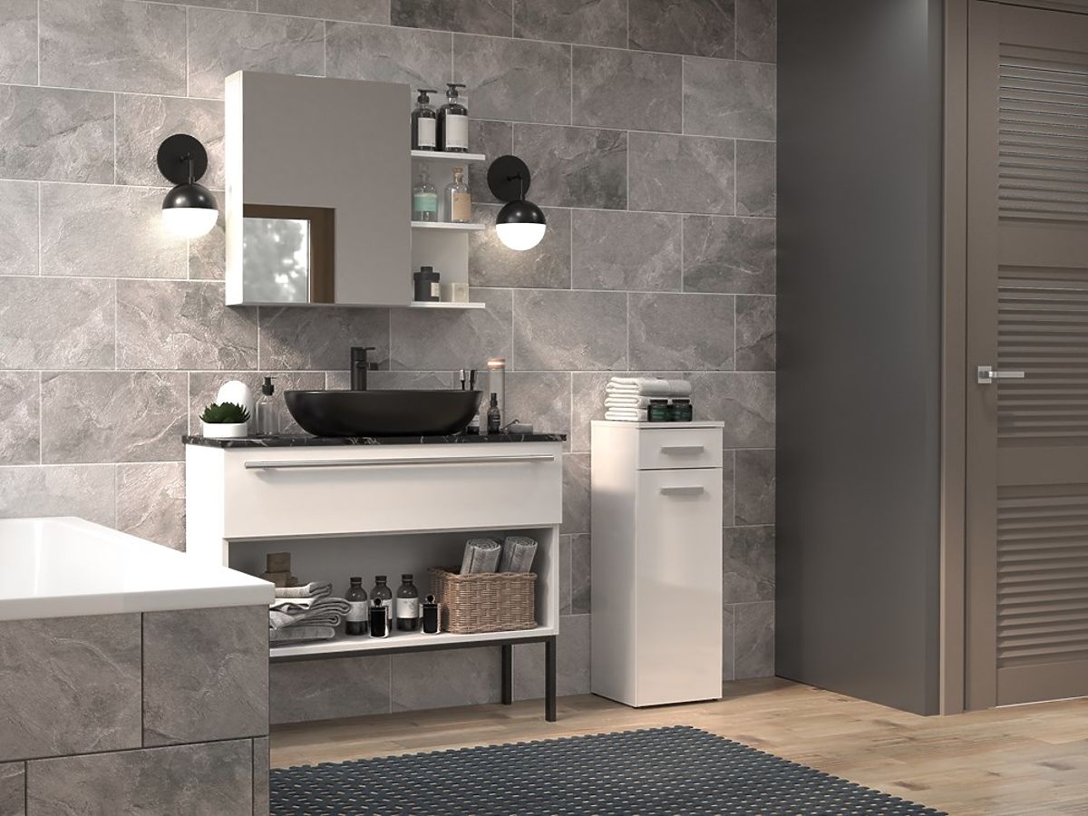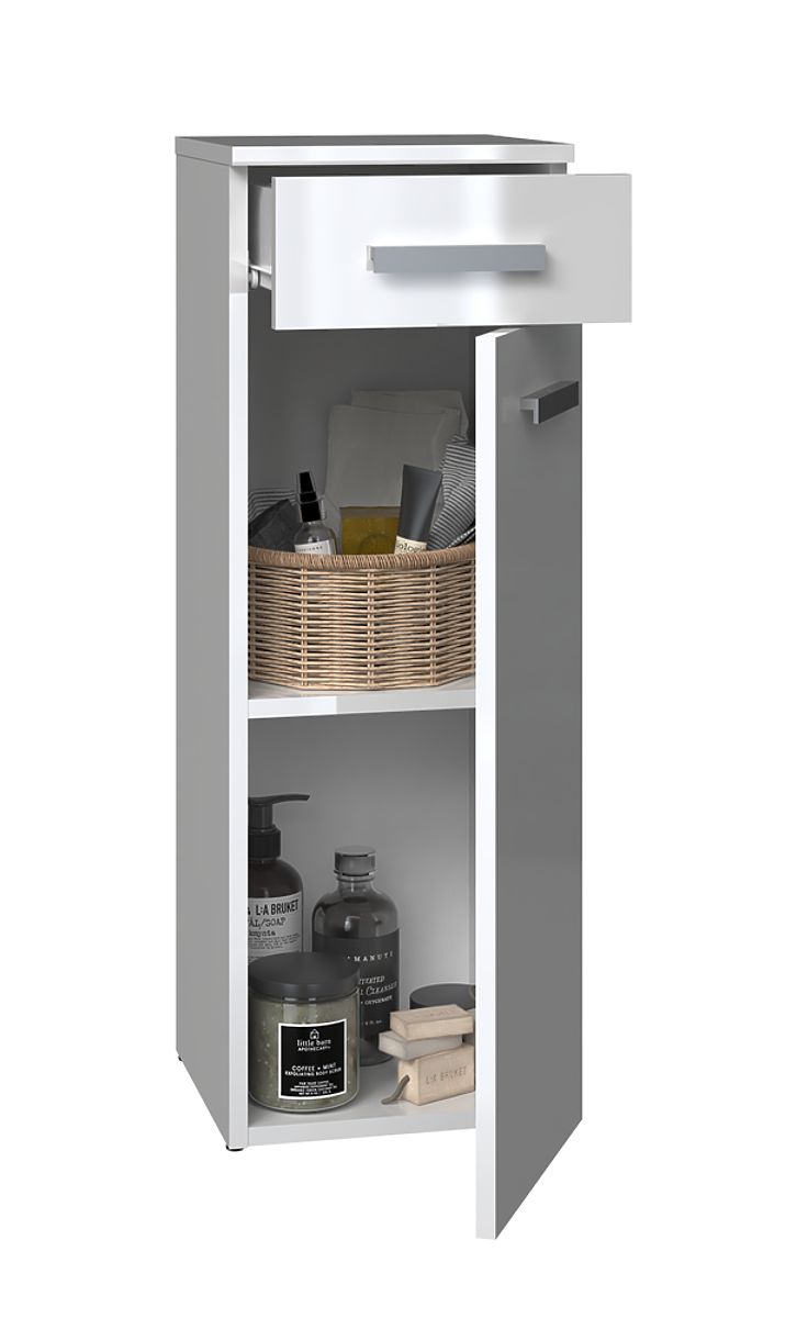 Kupaonski ormarić s ladicom i vratima, bijeli sjaj. .. više