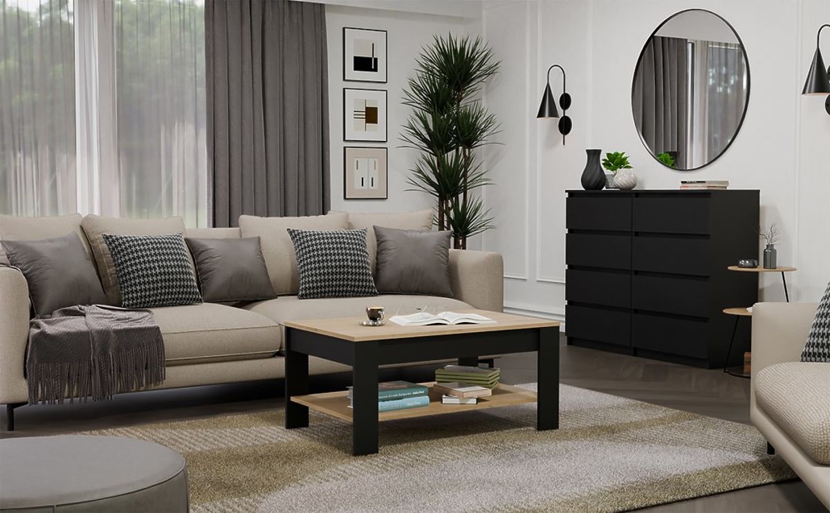 Moderni konferencijski stolić OHIO savršen je dodatak dnevnom boravku, dnevnoj sobi ili kutku za opuštanje. Kombinacija dekora Hrast Artisan s mat crnom daje namještaju moderan i elegantan karakter. Minimalistički oblik i funkcionalna donja polica osiguravaju da je namještaj ne samo estetski, već i vrlo praktičan za svakodnevnu upotrebu.