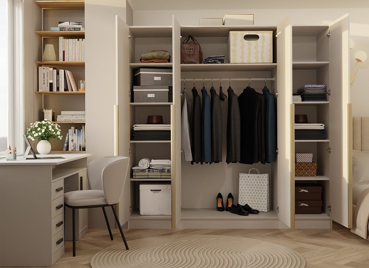 ORMAR SENSO 4D 200 CM 4 VRATA ZLATNE RUČKE ZA DNEVNI BORAVAK SPAVAĆU SOBU KAŠMIR BEŽ
