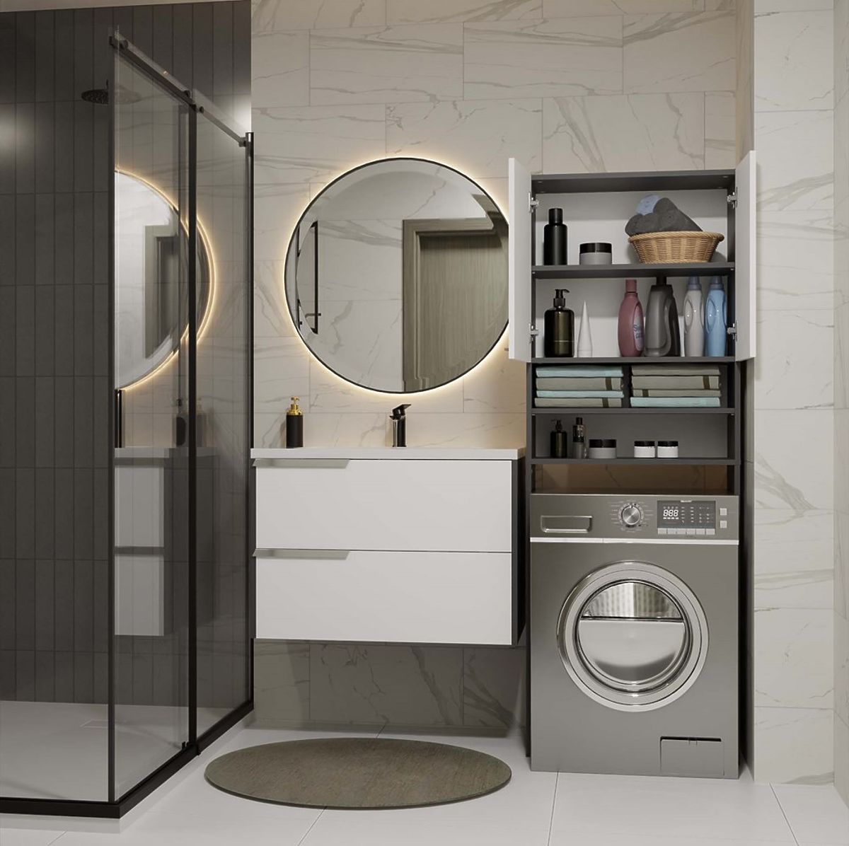 Kupaonski Ormar iznad Perilice POLA DK ANTRACIT BIJELA Regal Stup 180X64X30