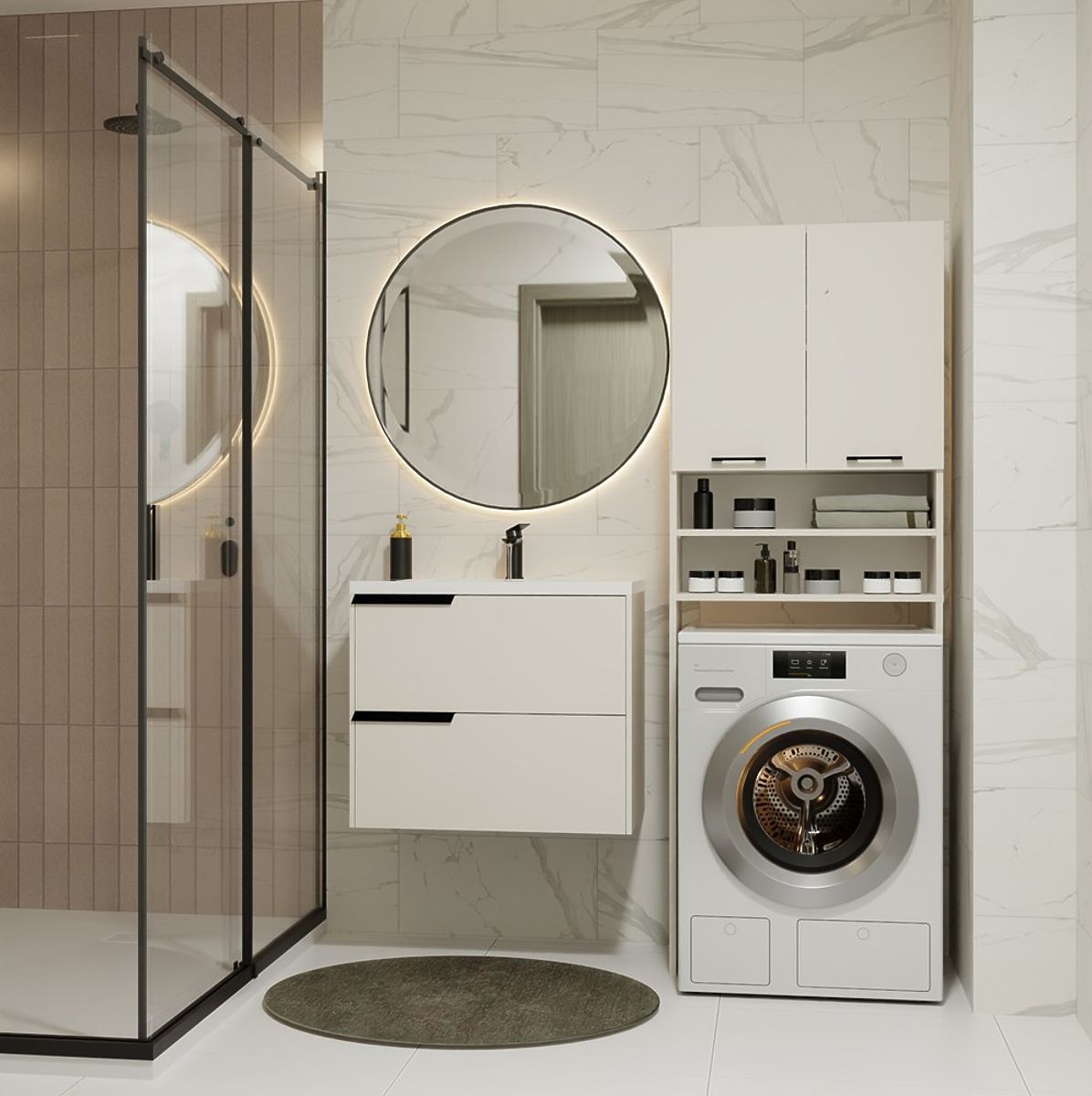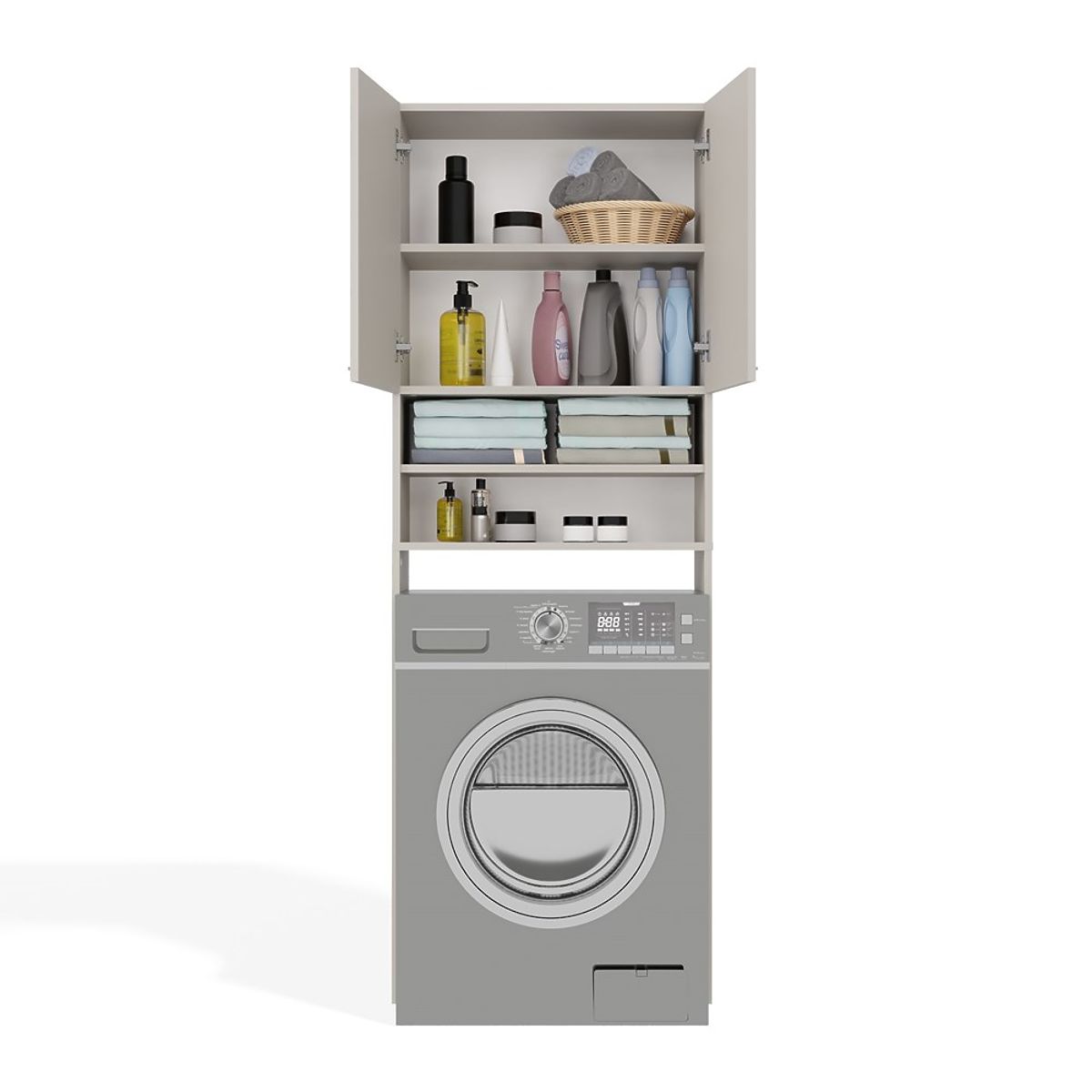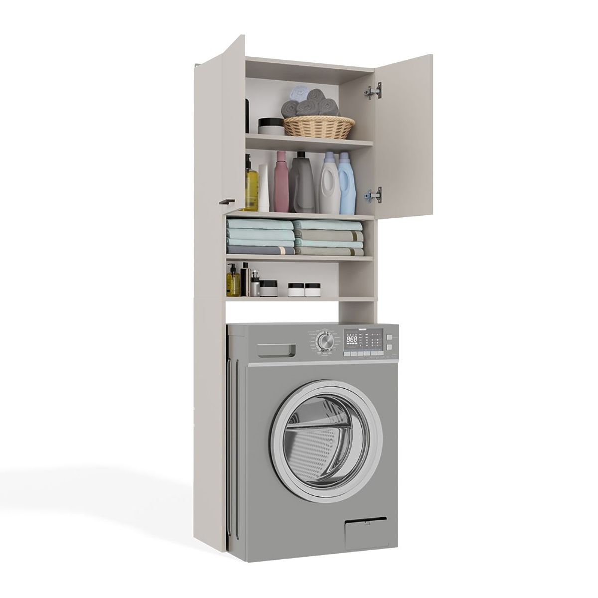- 4 prostrane police, od kojih su 2 skrivene iza vrata – idealne za ručnike, deterdžente i dodatke.