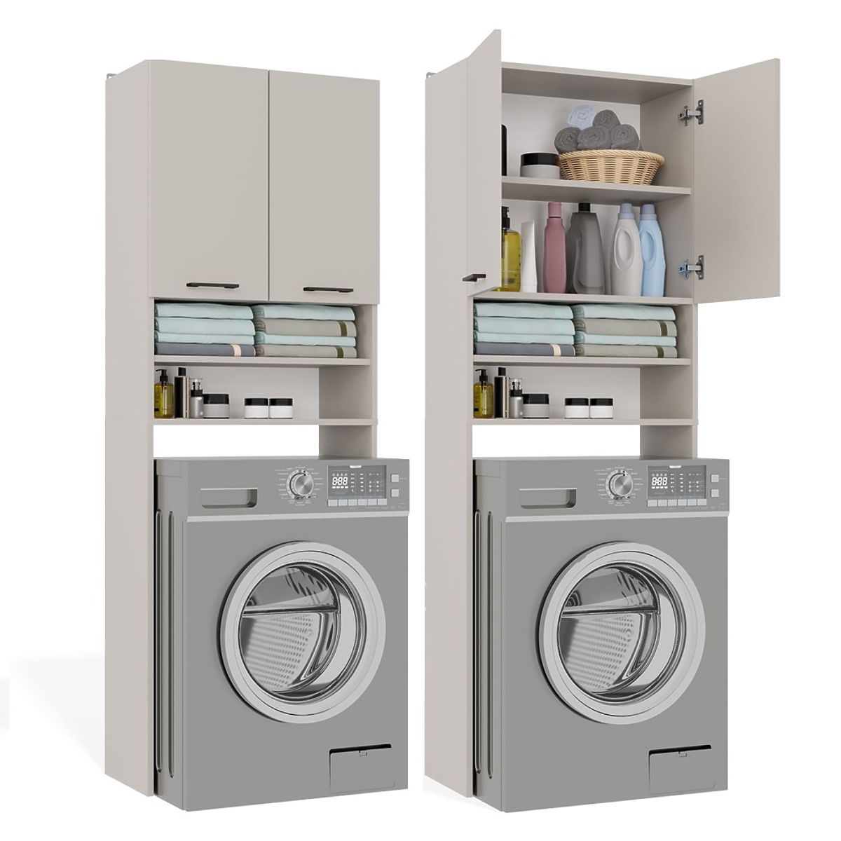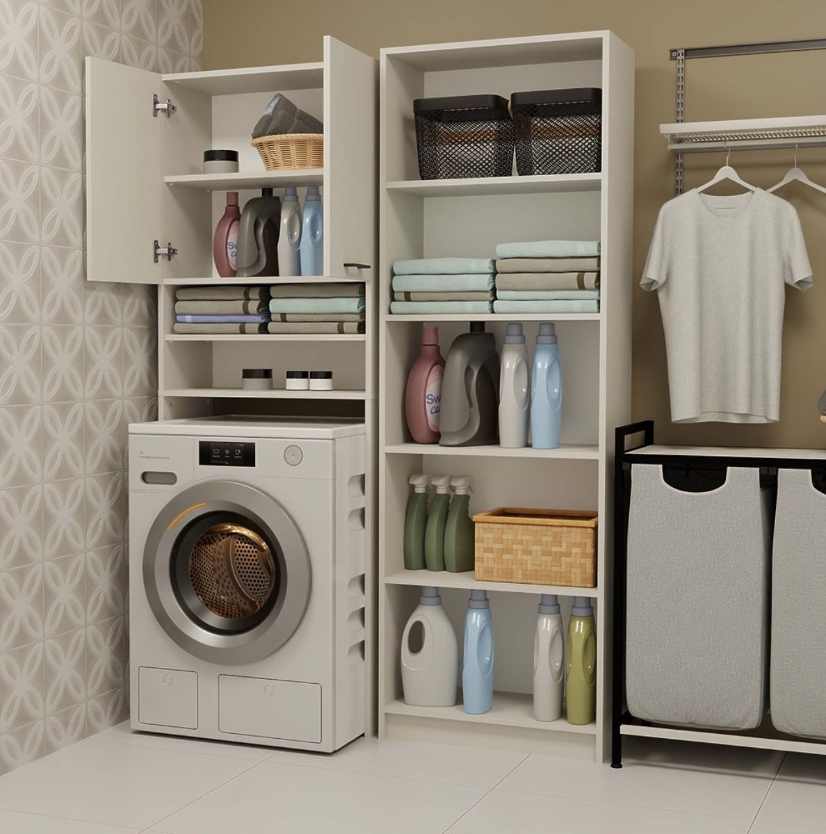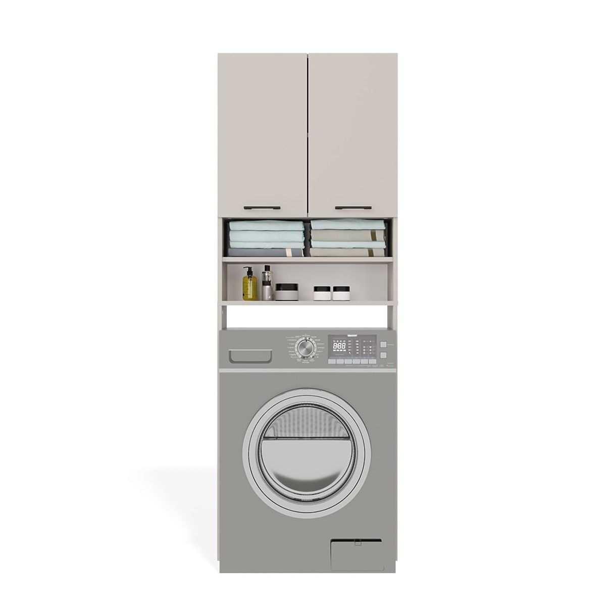 - 4 prostrane police, od kojih su 2 skrivene iza vrata – idealne za ručnike, deterdžente i dodatke.