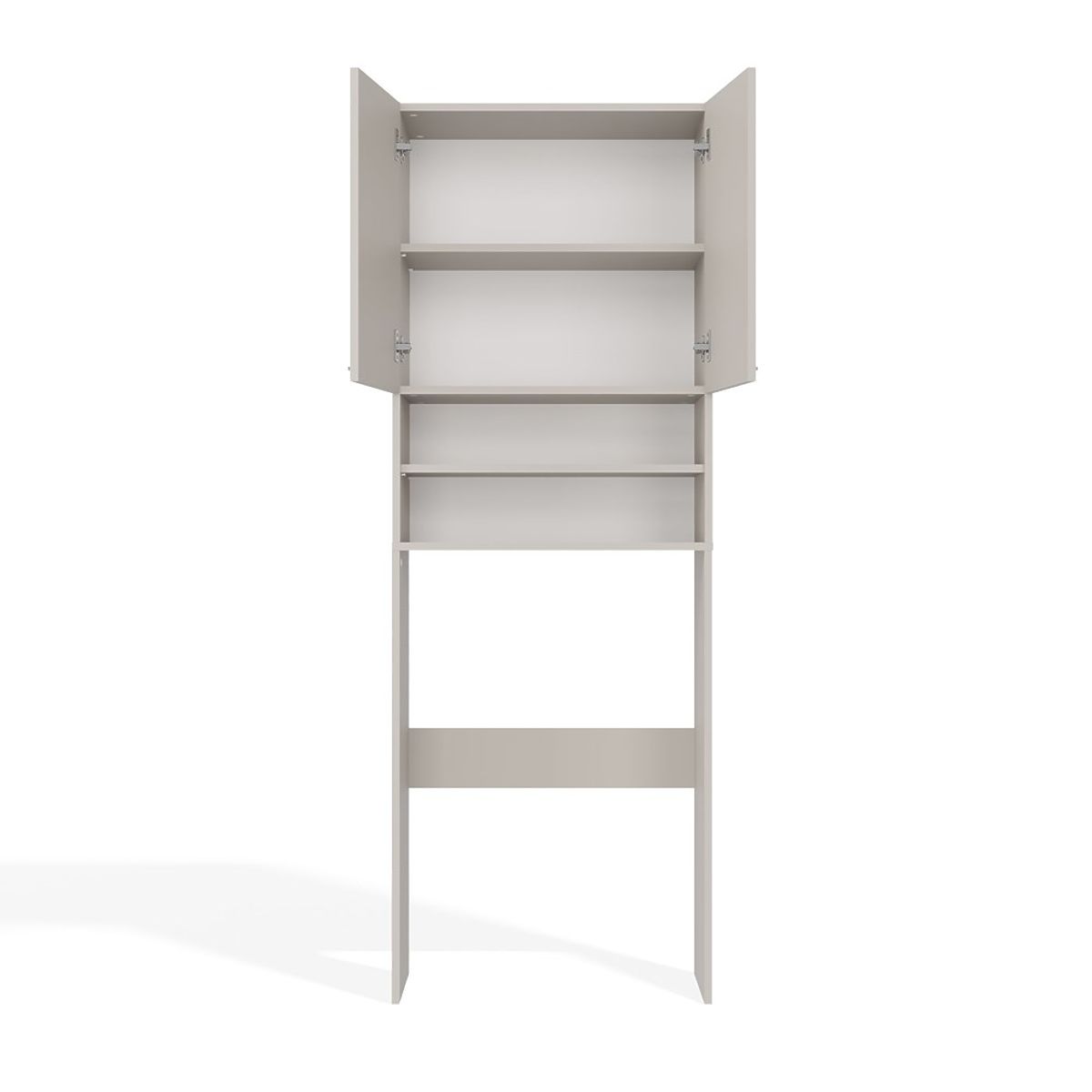 Na raspolaganju su ukupno 4 praktične police, od kojih su 2 skrivene iza dvostrukih, kratkih vrata. Bez problema će primiti ručnike, sredstva za čišćenje, deterdžente ili kozmetiku.