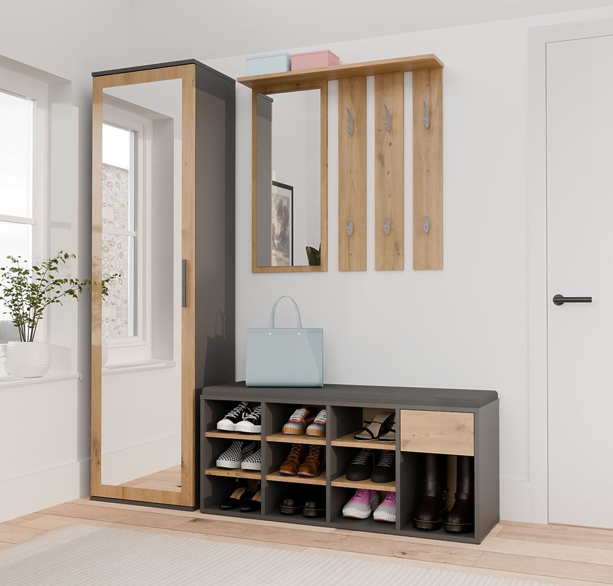 Lukahome.hr » Namještaj / Stalak za cipele / Otvorena cipelar ormarić TALLIN ANTRACIT HRAST ARTISAN za predsoblje