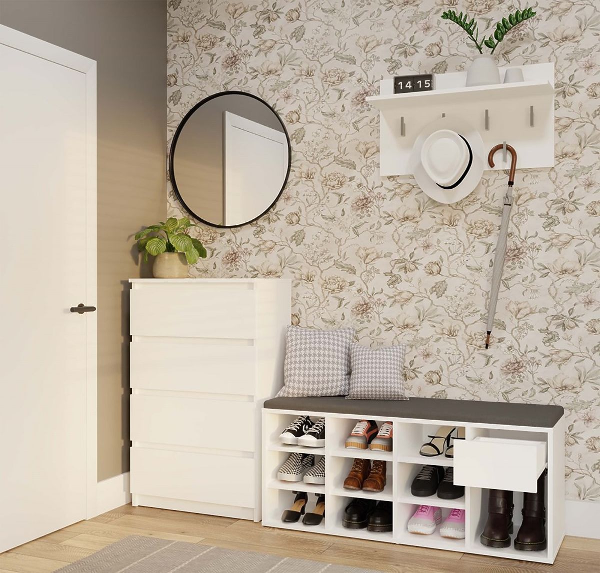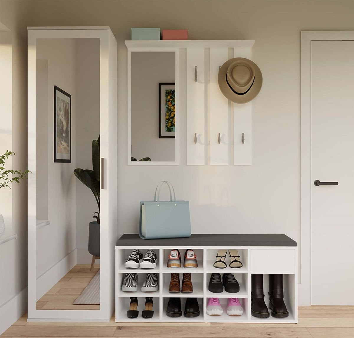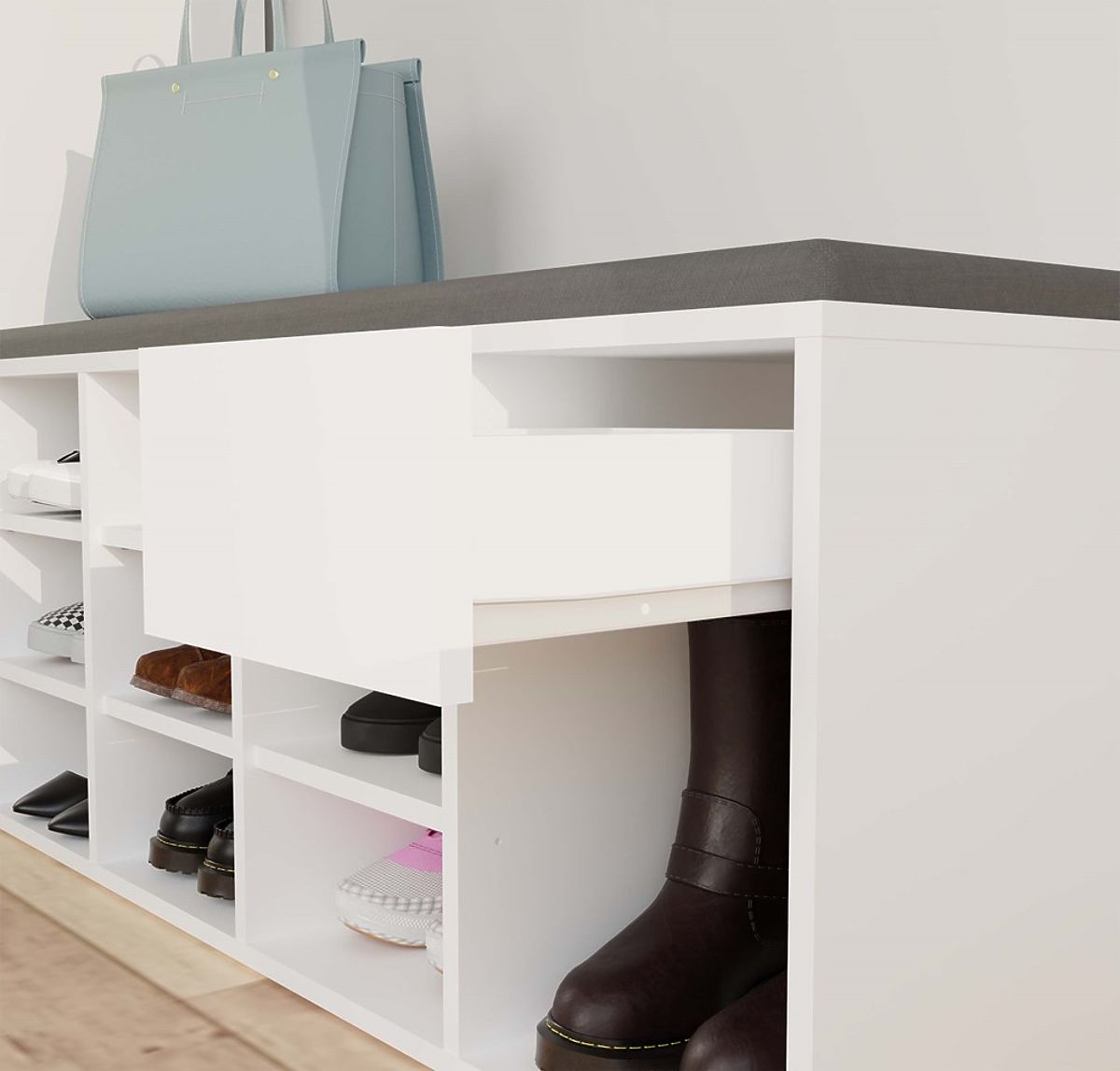 Ormar za cipele s tapeciranom sjedalicom i 9 pretinaca. .. više