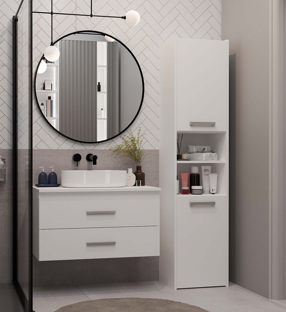 VISOKI KUPAONSKI ORMARIĆ NEL 80 BIJELI S 2 LADICE ISPOD UMIVAONIKA