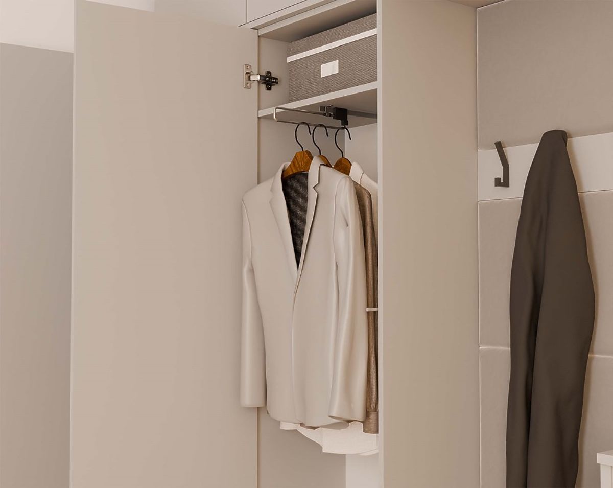 Serija modularnog namještaja HAGA dizajnirana je kako bi omogućila slobodno sastavljanje elemenata - lako se može proširiti set dodatnim modulima, npr. vješalicom, i kreirati vlastiti raspored ormara prilagođen prostoru i potrebama.