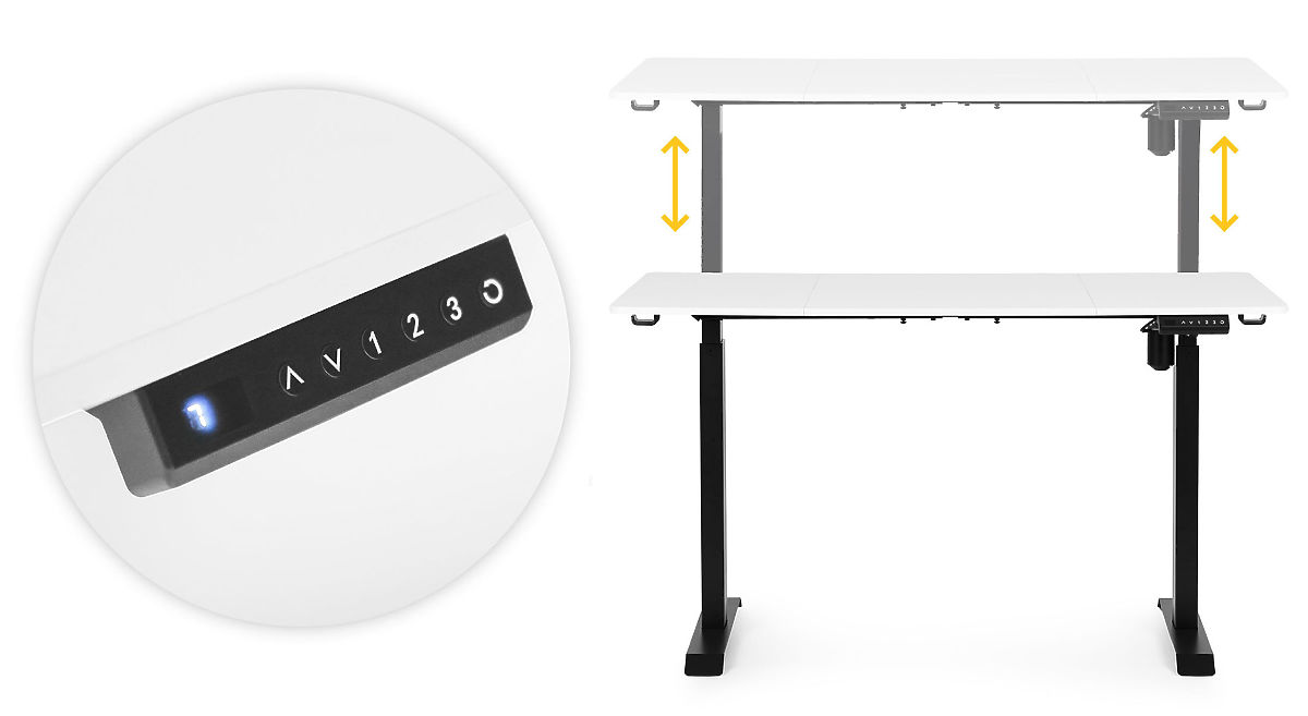 POTPUNA KONTROLA NA DOHVAT RUKEIntuitivna upravljačka ploča s gumbima gore/dolje omogućuje precizno podešavanje visine ploče, a tri numerička gumba omogućuju spremanje omiljenih položaja. Osim toga, moguće je postaviti podsjetnik za promjenu položaja svakih 30, 45 ili 60 minuta, što podržava održavanje zdravih radnih navika.
