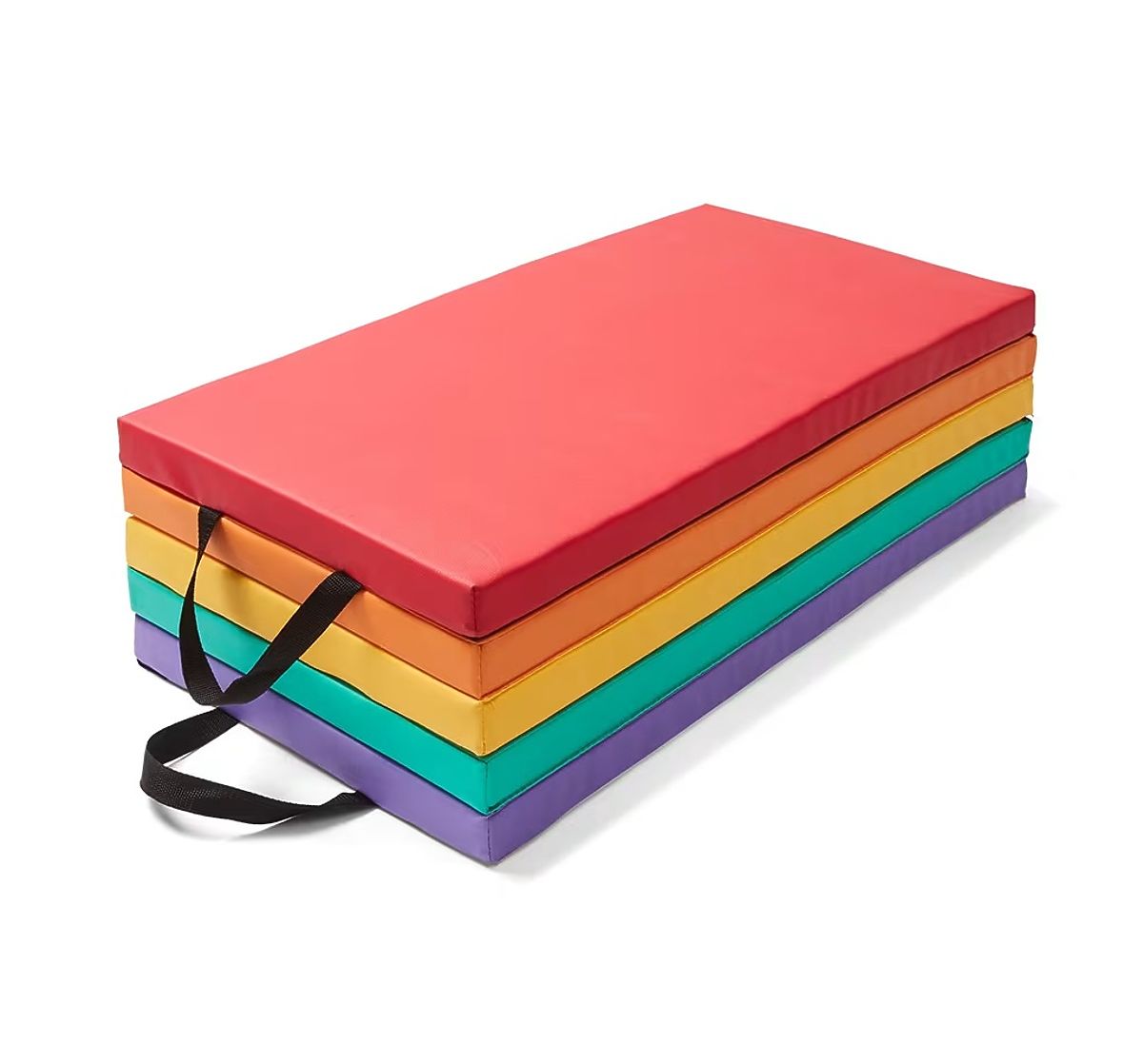 Šarena podloga za vježbanje s duginim dizajnom i praktičnim ručkama. .. više