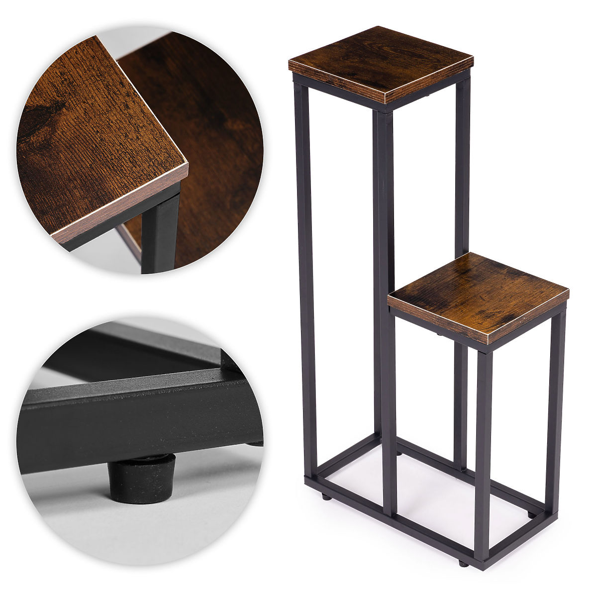 IZDRŽLJIVI MATERIJALIStalak za cvijeće izrađen je od čelika s praškastim premazom, što osigurava otpornost na koroziju i mehanička oštećenja. Police od iverice završene su u boji koja imitira prirodno drvo, što naglašava dekorativni, loft karakter namještaja.