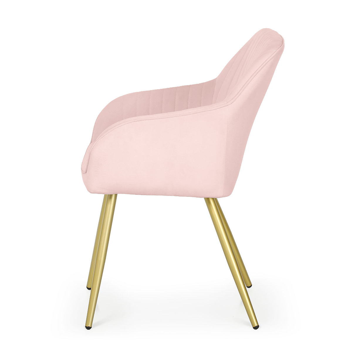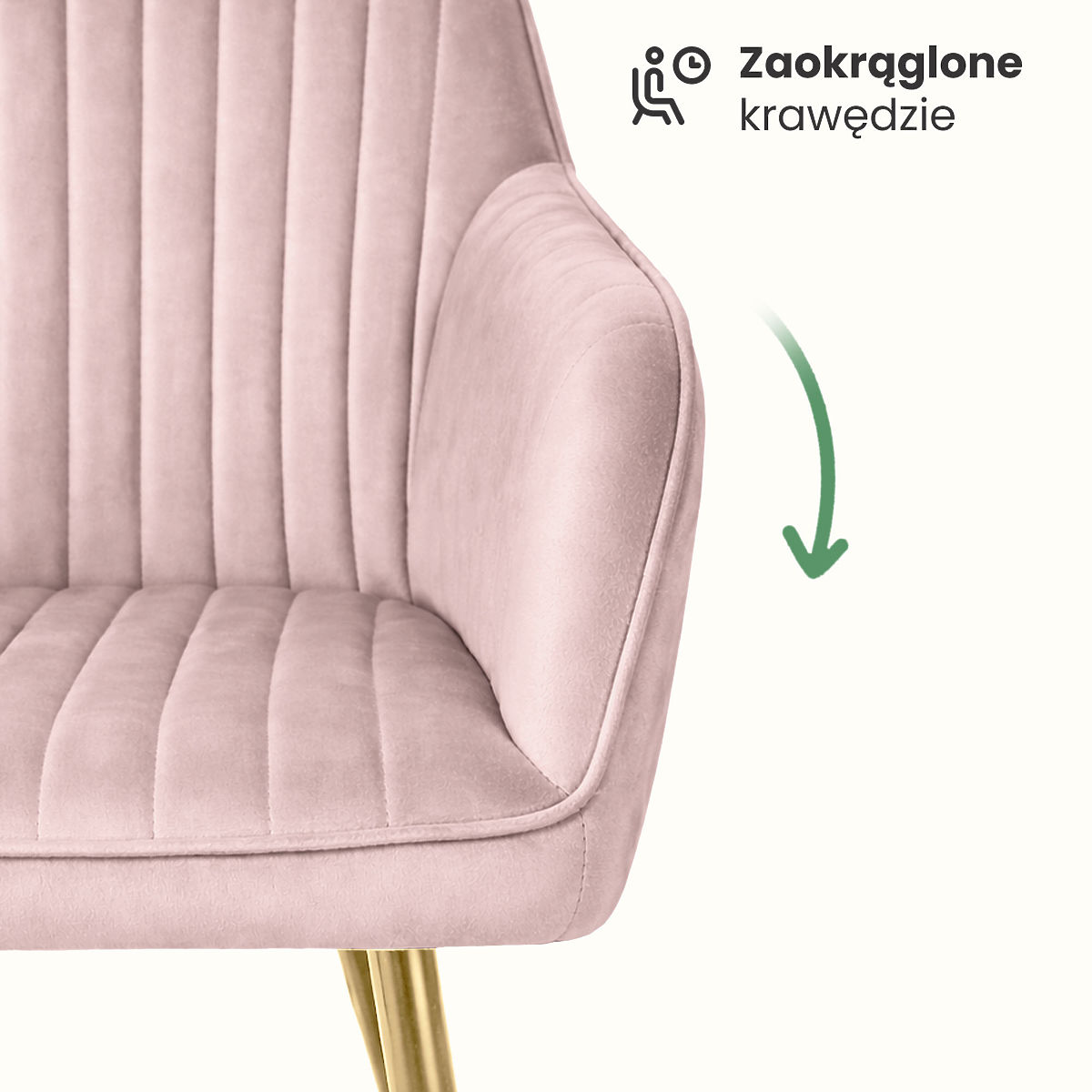 Lukahome.hr » Blagovaonica i kuhinja / Objed stolica / 4x Baršunasta tapecirana stolica s prošivom Puder Ružičasta FLORENCE Zlatne noge