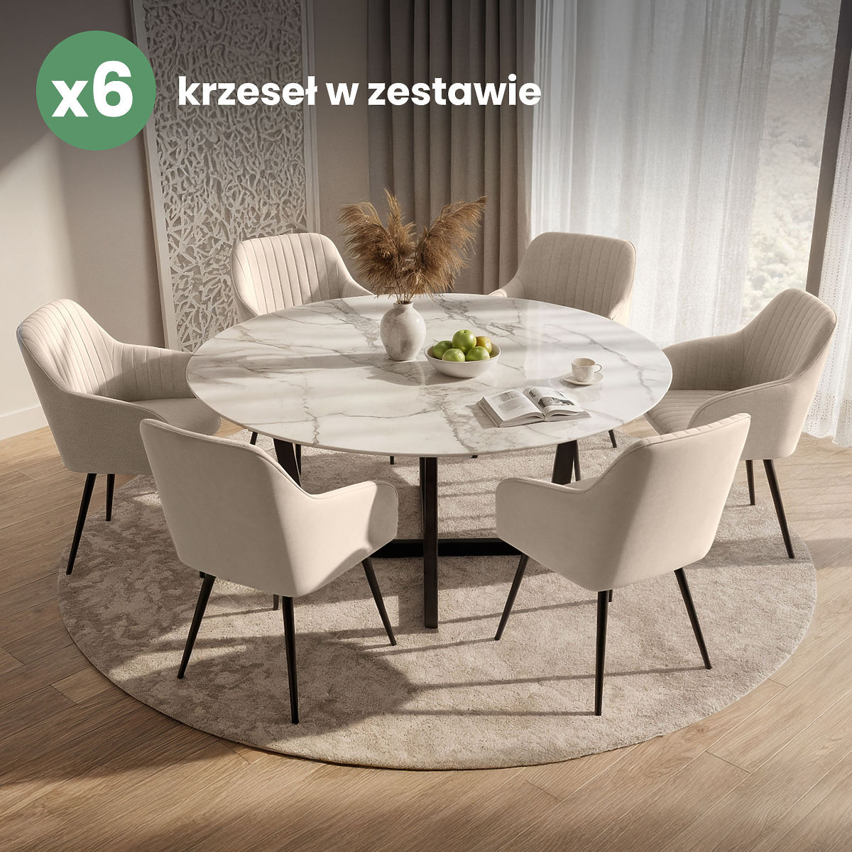 Lukahome.hr » Blagovaonica i kuhinja / Objed stolica / 6x Baršunasta tapecirana stolica s prošivanjem Bež FLORENCE Crne noge