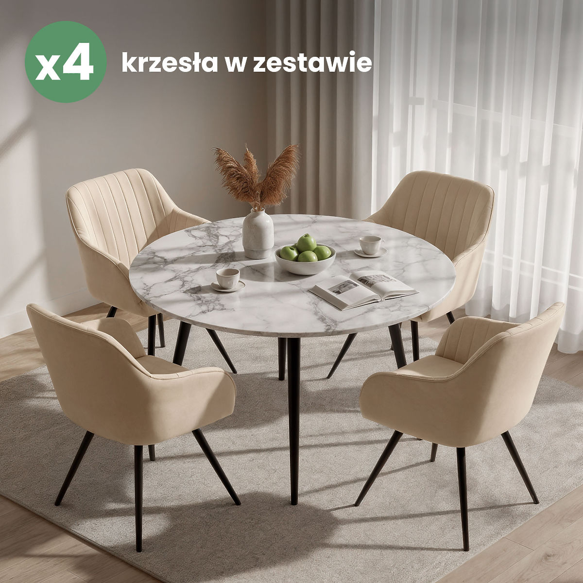 Lukahome.hr » Blagovaonica i kuhinja / Objed stolica / 4x Baršunasta rotirajuća stolica s prošivanjem Bež TURNO Crne noge