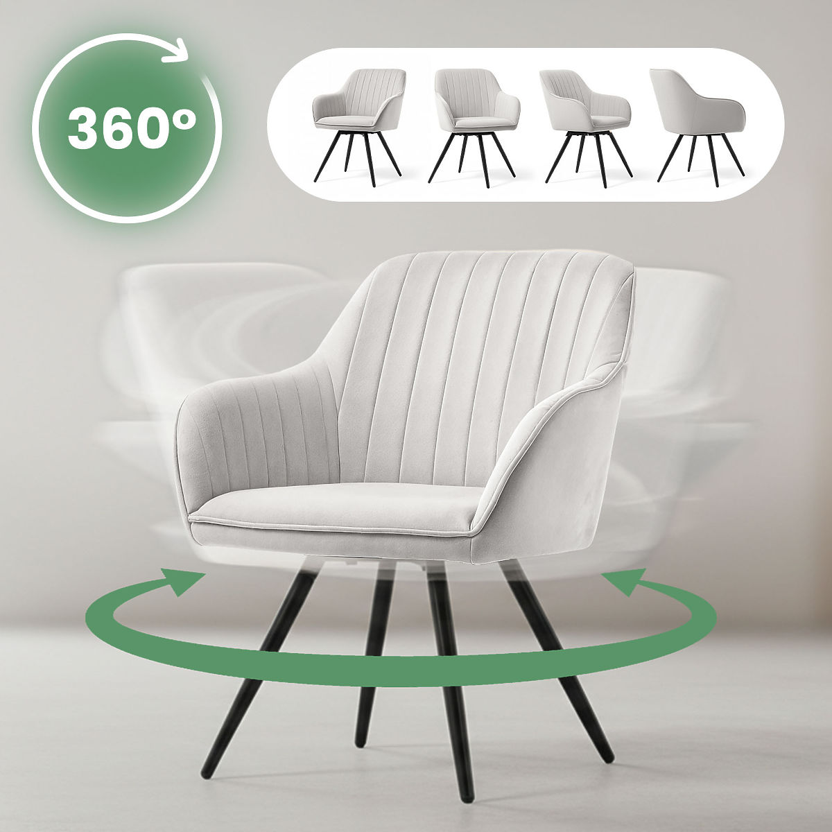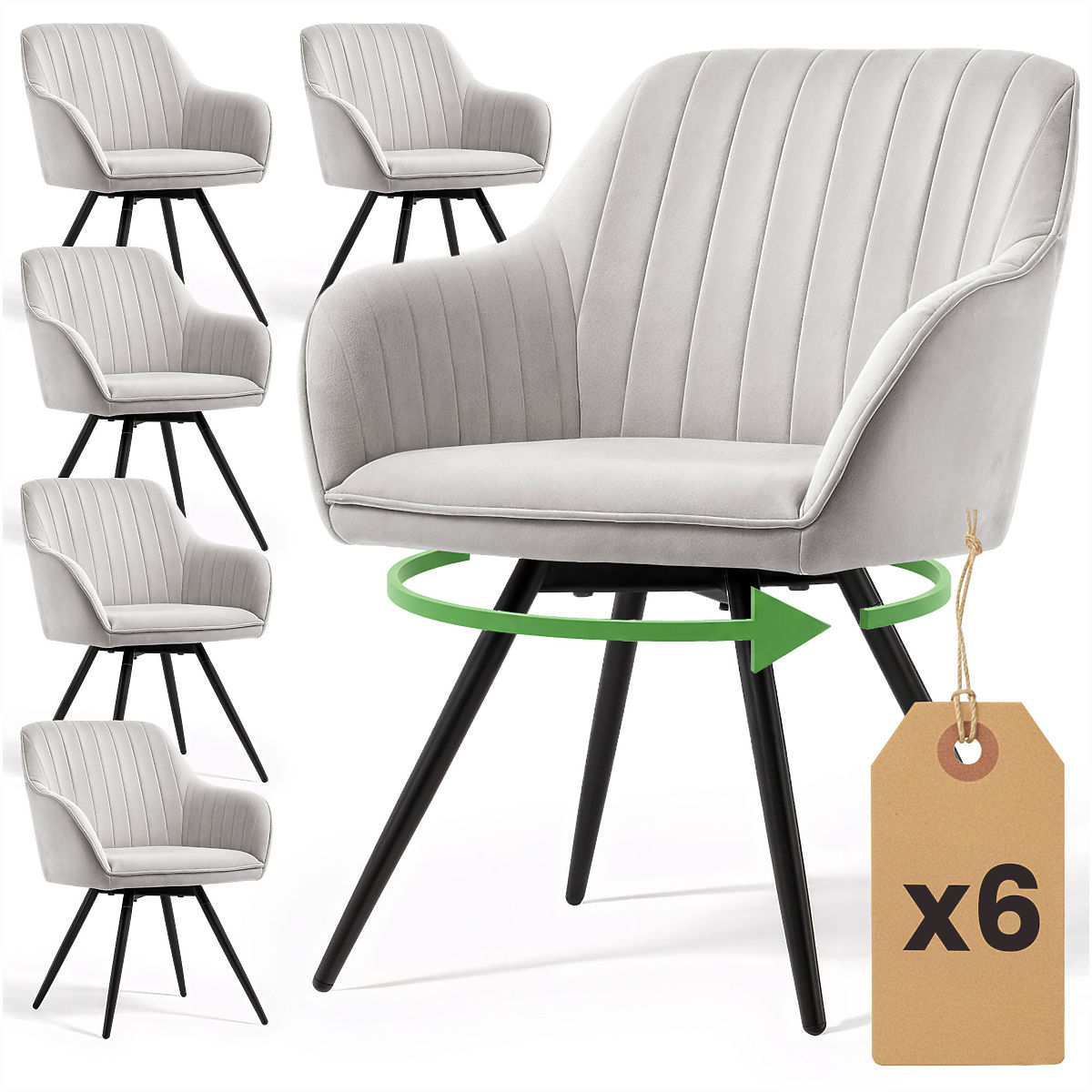 Lukahome.hr » Blagovaonica i kuhinja / Objed stolica / 6x Baršunasta okretna stolica s prošivom Siva TURNO Crne noge
