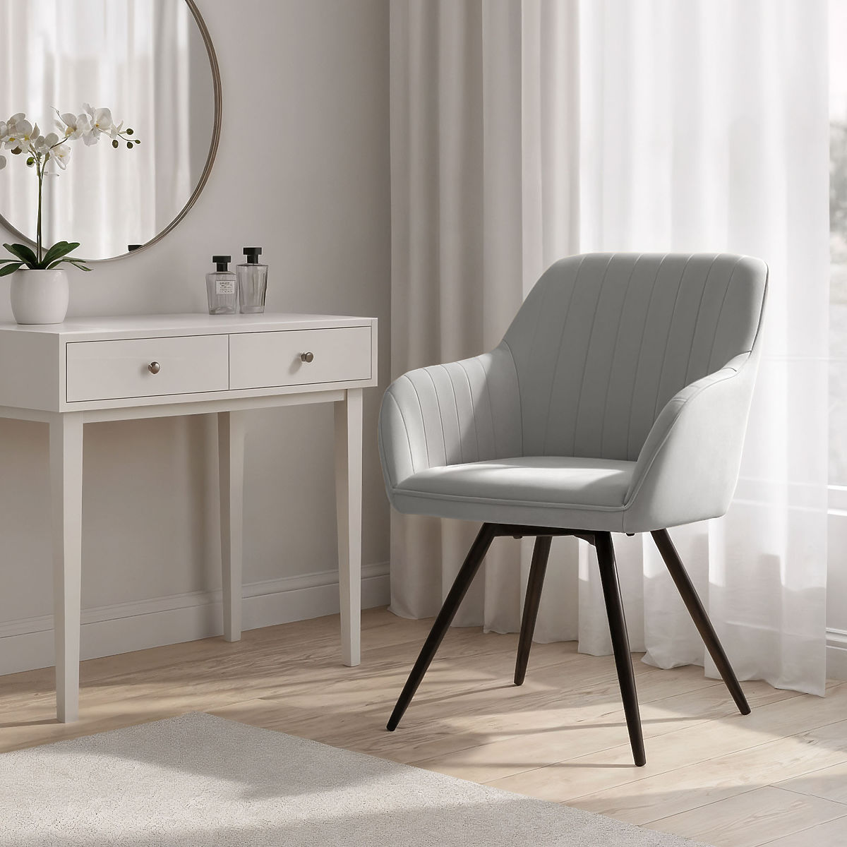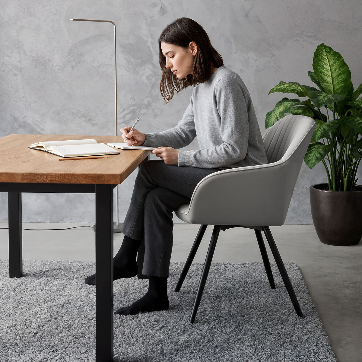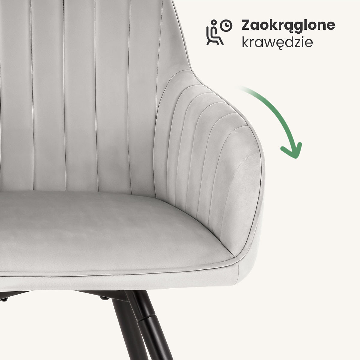 Okretna stolica TURNO namijenjena je ljubiteljima modernih, pametnih i praktičnih rješenja. Stolica se okreće u rasponu od 360°, što osigurava iznimnu udobnost pri korištenju. Odlično se pokazuje posebno u malim prostorima - nije ju potrebno odmicati, što znači da zauzima manje prostora od obične stolice. Za udobnost sjedenja brine se elegantna, baršunasta presvlaka s vertikalnim prošivom i punjenje od pjene visoke gustoće. Okretna stolica TURNO savršeno se uklapa u interijere industrijskog, modernog ili mid-century modern stila.