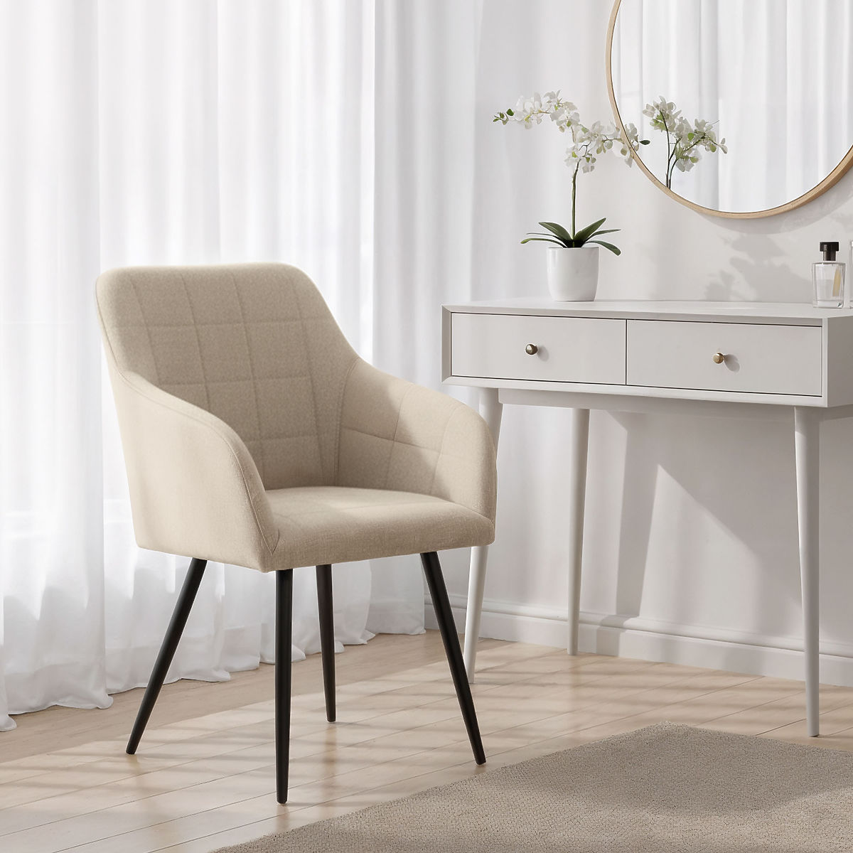 Lukahome.hr » Blagovaonica i kuhinja / Objed stolica / 6x Tapecirana stolica s kvadratnim prošivom Bež LUXANO Crne noge tkanina Lumos