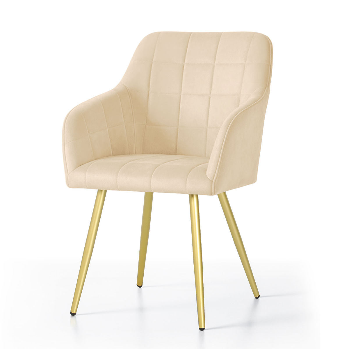 Lukahome.hr » Blagovaonica i kuhinja / Objed stolica / 6x Tapecirana stolica s kvadratnim prošivom Bež LUXANO Zlatne noge
