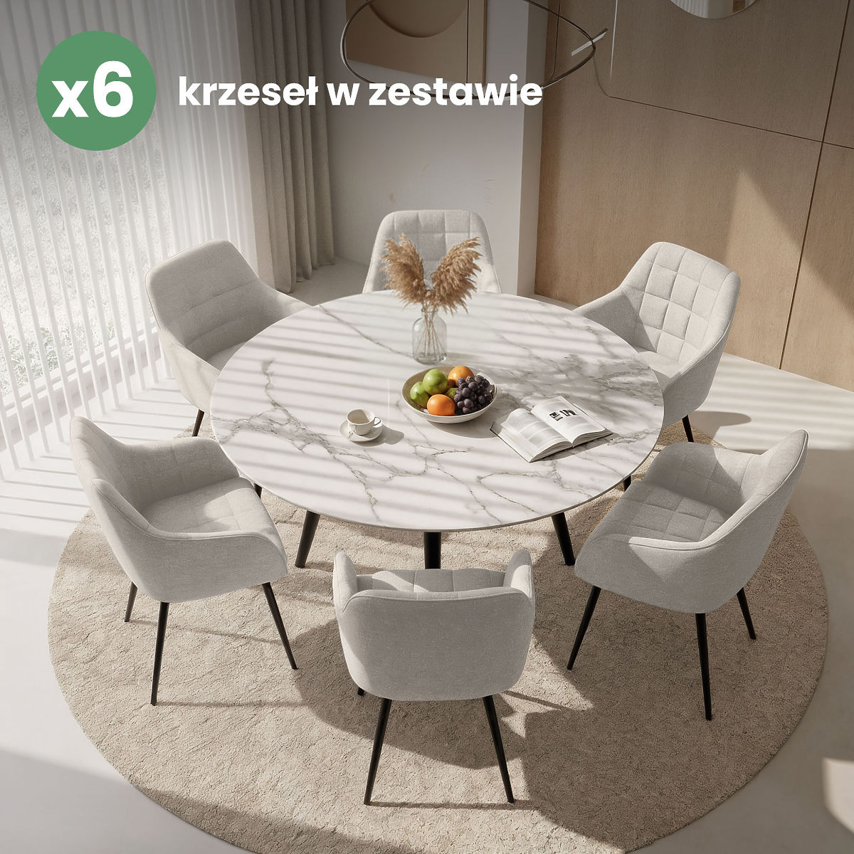 Lukahome.hr » Blagovaonica i kuhinja / Objed stolica / 6x Tapecirana stolica s kvadratnim prošivom Krem LUXANO Crne noge tkanina Lumos