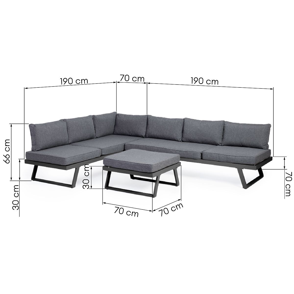 Kutna garnitura Lafoole Lunge s aluminijskom konstrukcijom i spun-poly jastucima. .. više