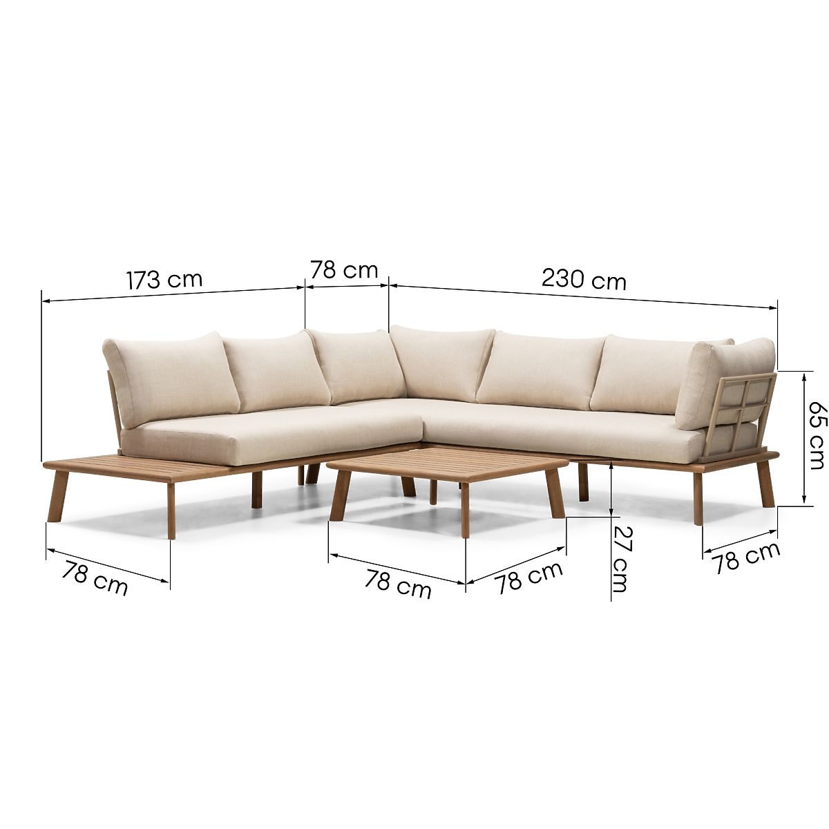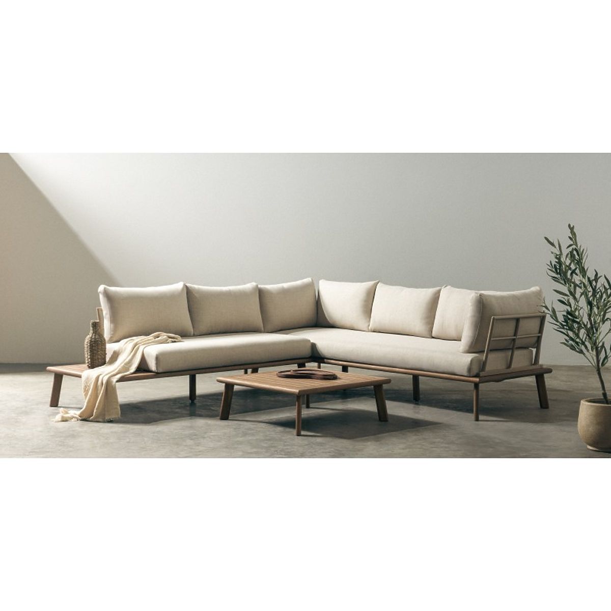 Vrtna kutna garnitura Penne od eukaliptusovog drva s bež jastucima. .. više