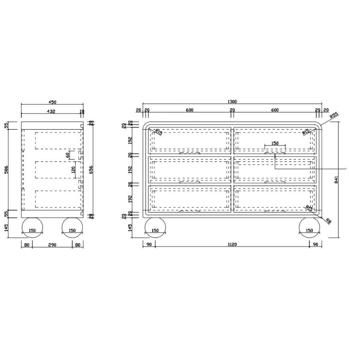 Lukahome.hr » Namještaj / Komode s ladicama / Komoda s ladicama Lauria 130 cm, bijela, zaobljena, kuglaste noge