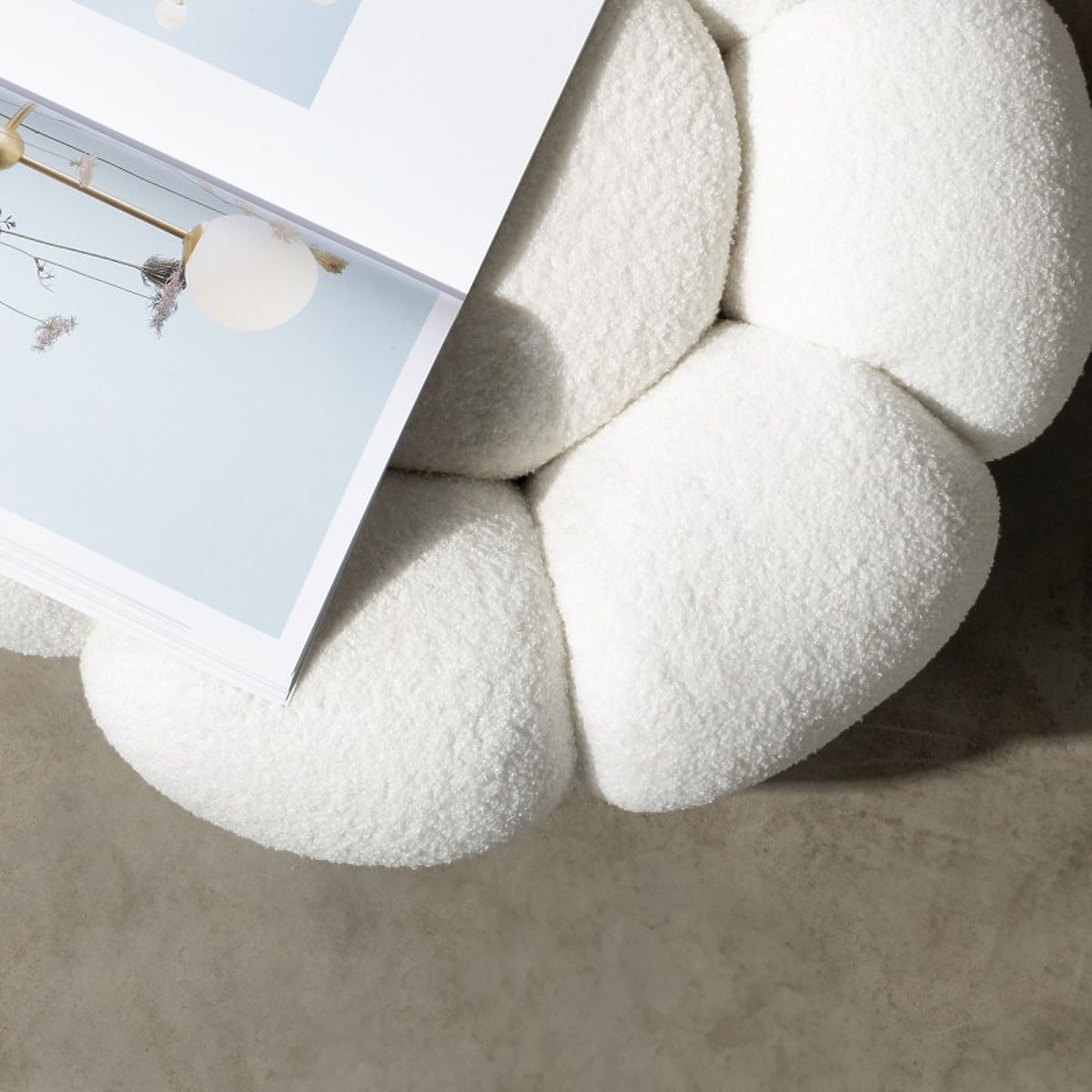 Puf Perugia ima bijelu boucle presvlaku i zaobljene oblike. .. više