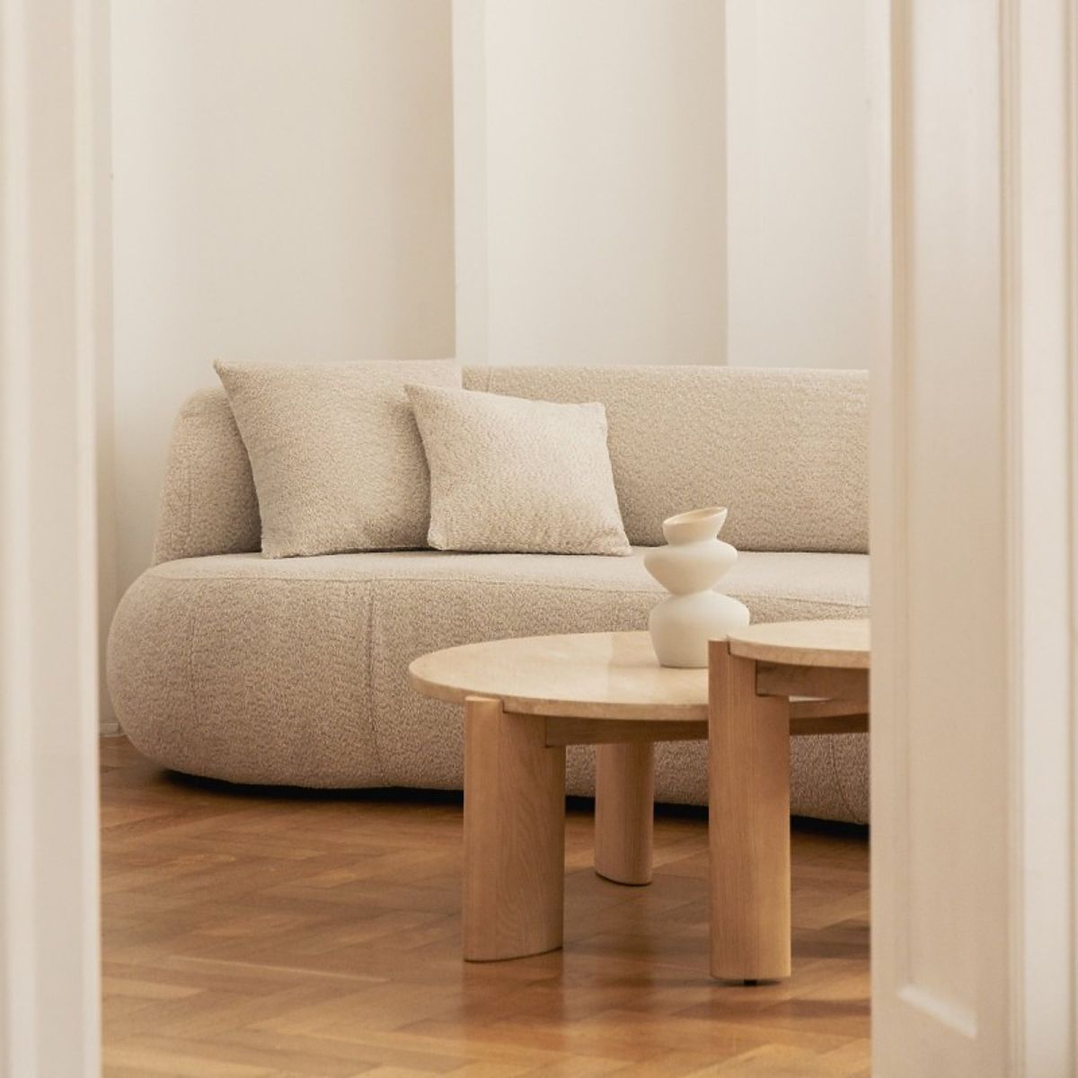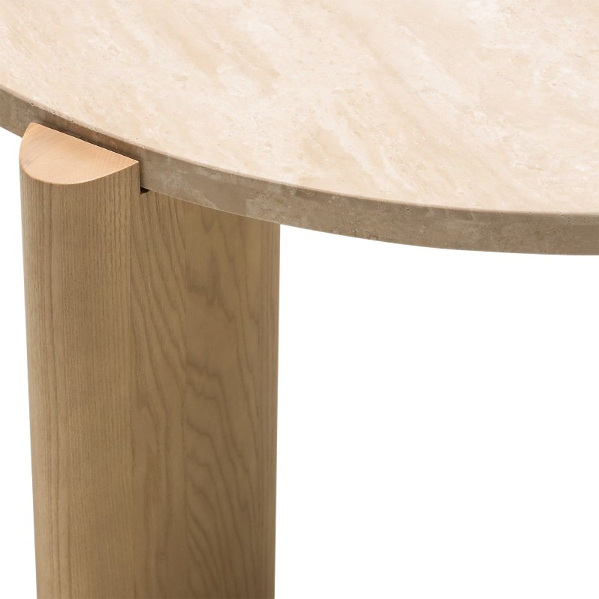 Okrugli stolić Medley s pločom od travertina i nogama od jasena. .. više