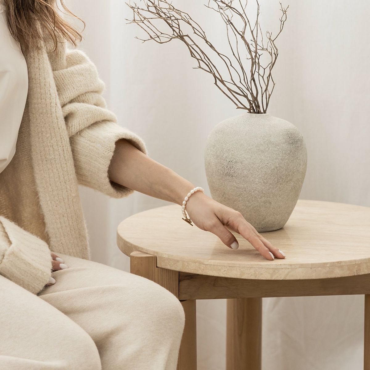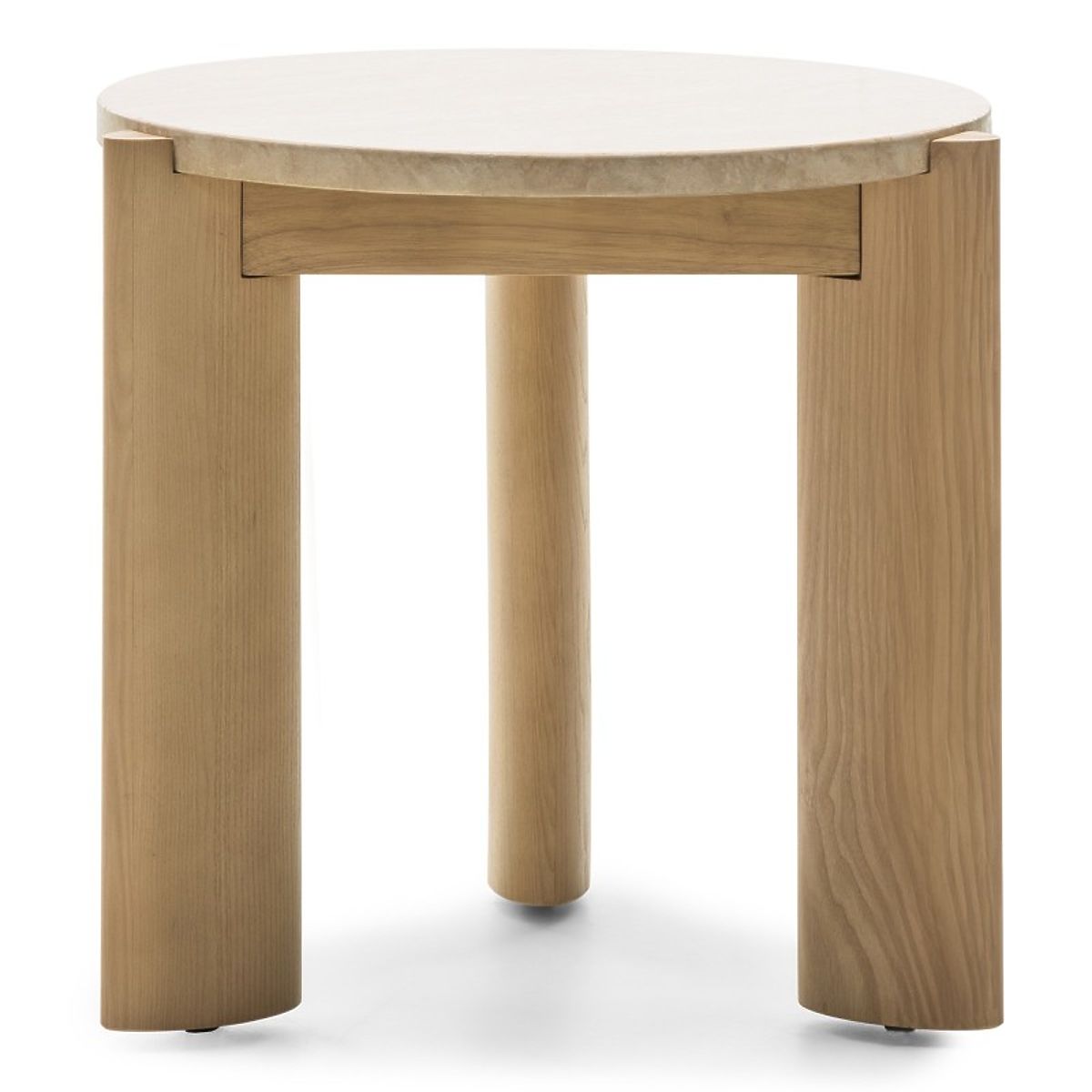 Lukahome.hr » Stolovi i stolići za kavu / Klub stolići / Bočni stolić Medley 50 cm, okrugli, travertin/jasen