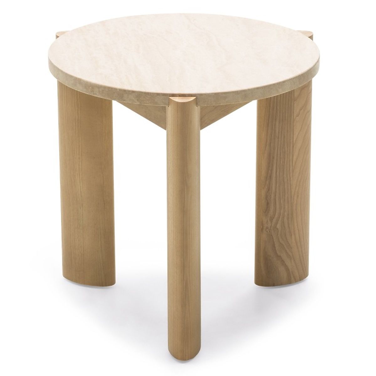 Okrugli stolić od travertina i jasena promjera 50 cm. .. više