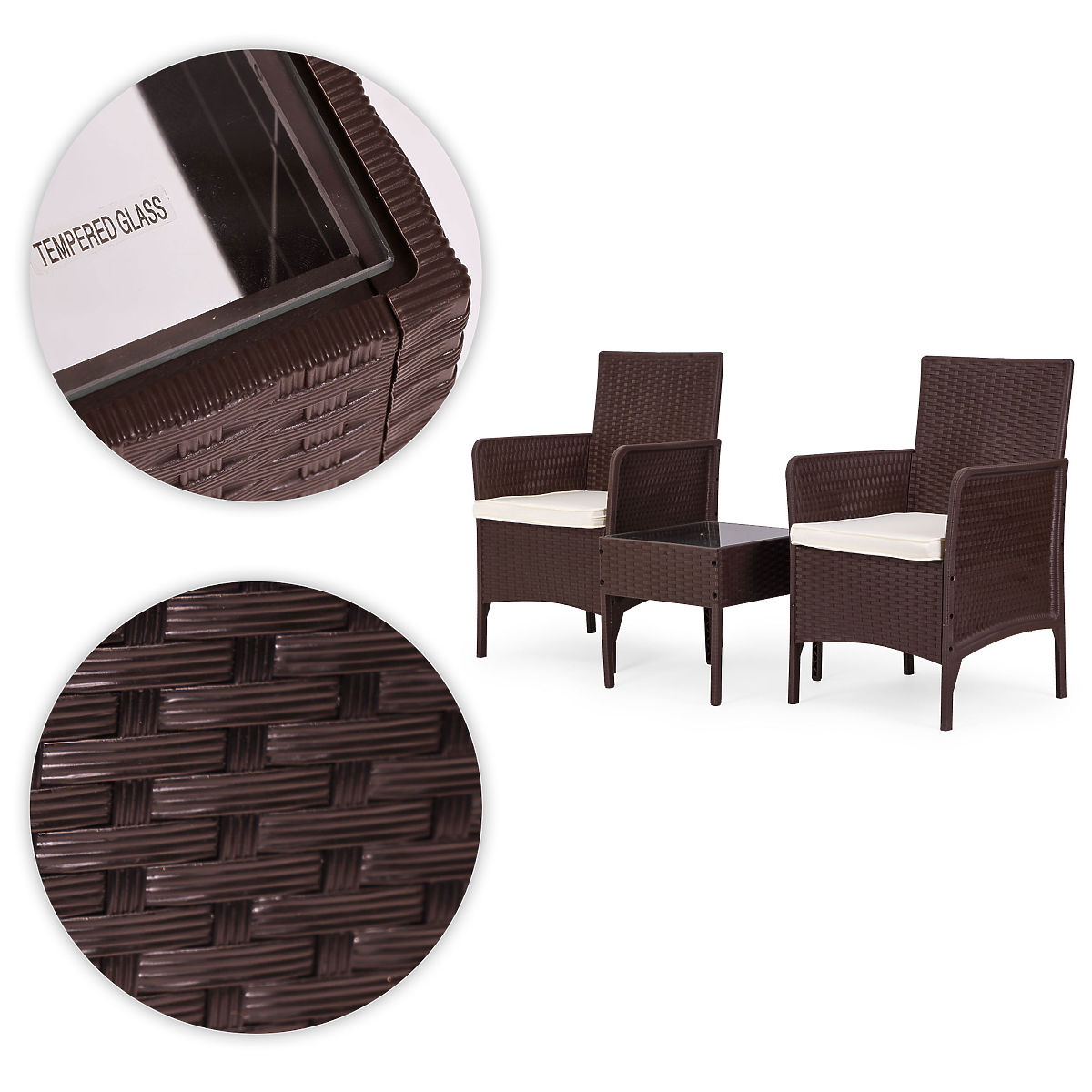 Lukahome.hr » Vrtni namještaj / Vrtni setovi / Vrtni set namještaja 2 stolice + stol kaljeno staklo smeđa MultiGarden