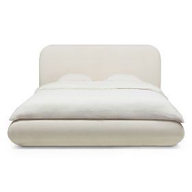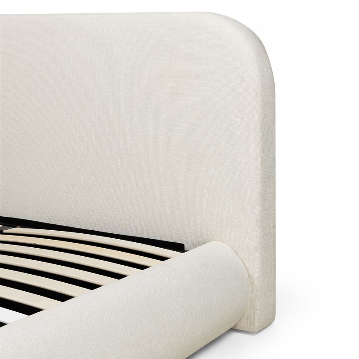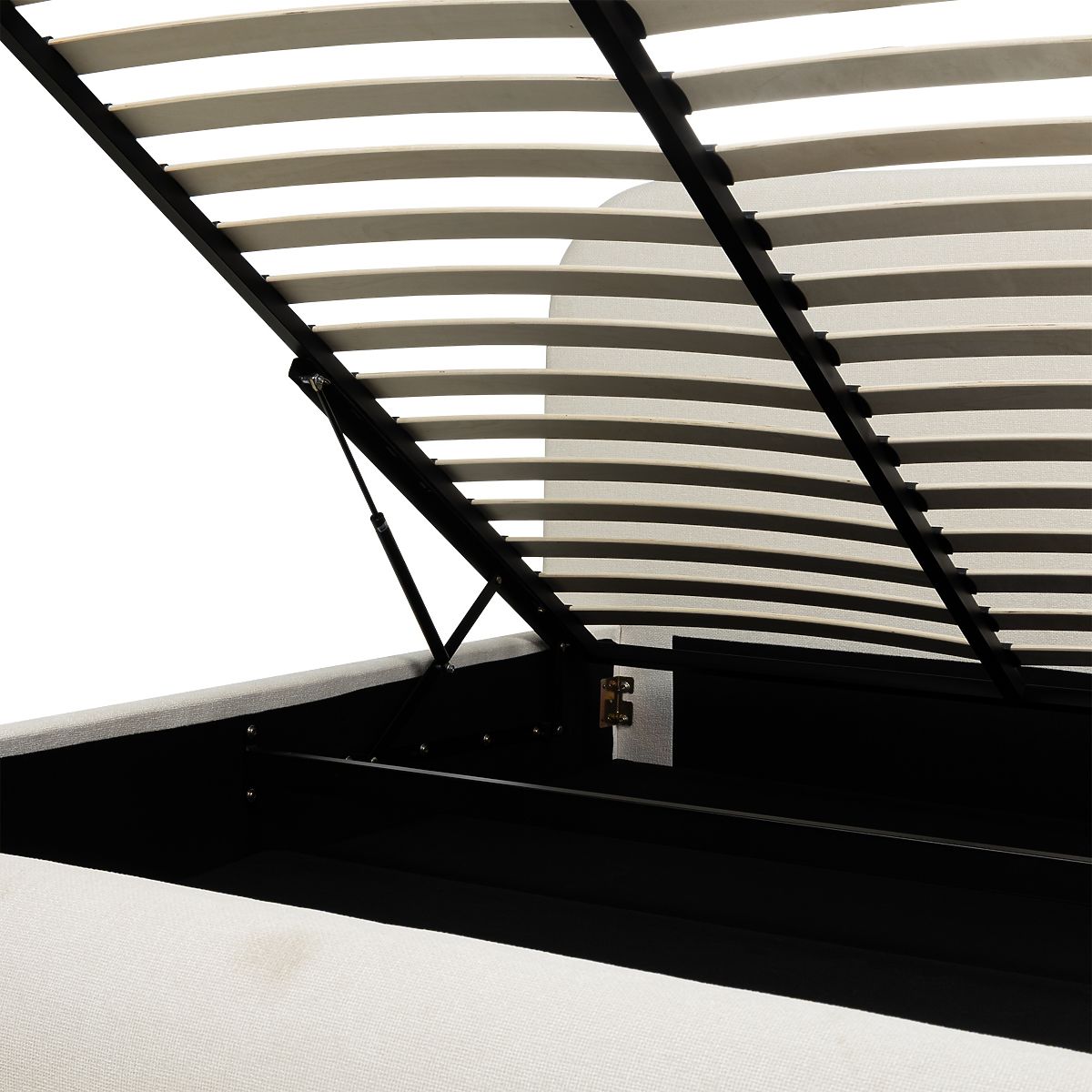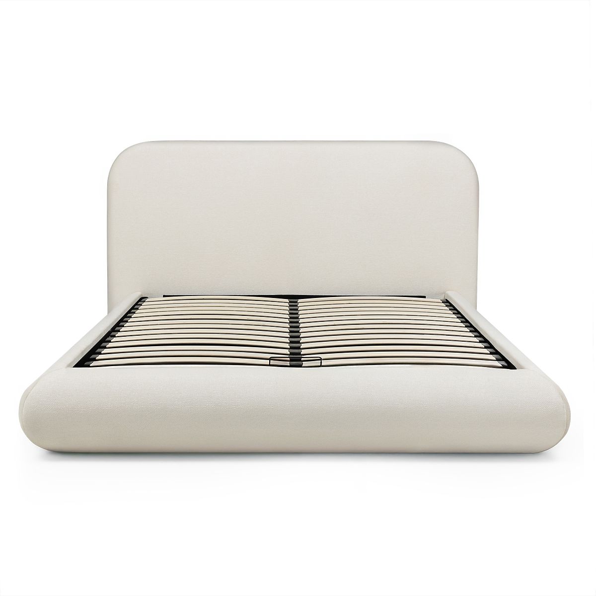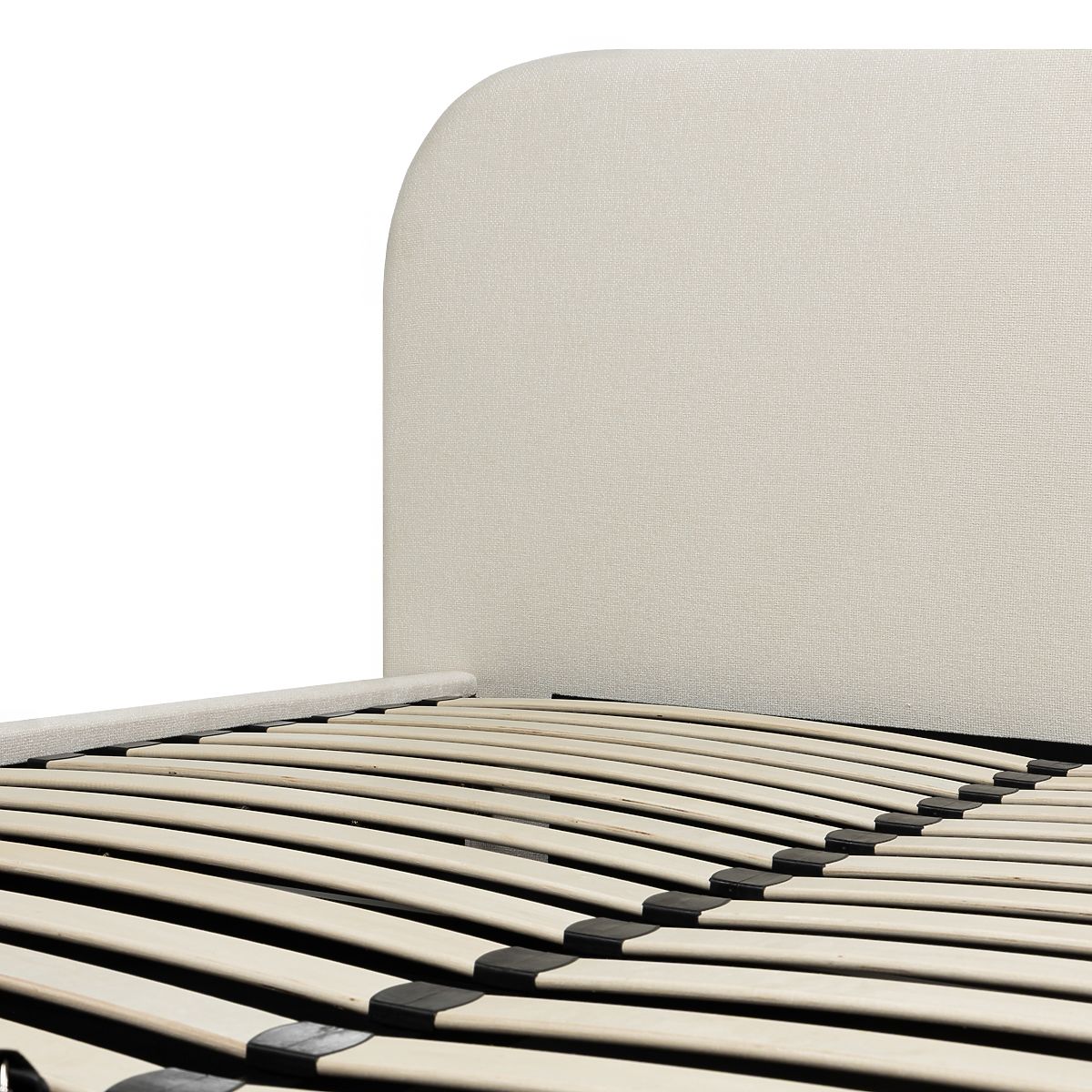 Tapecirani krevet Lumi s podnicom i spremištem, zaobljen, svijetlo bež. .. više