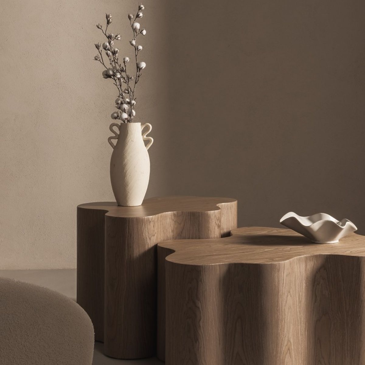 Bočni stolić Cosmo s nepravilnom pločom i orahovim furnirom. .. više