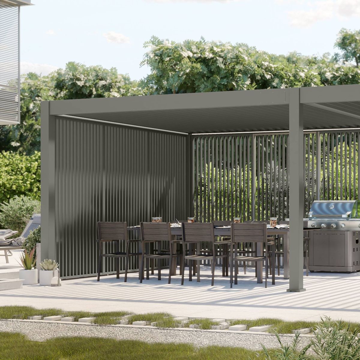Lukahome.hr » Vrtovi / Sjenice / Samostojeća vrtna pergola Lumera od aluminija, 4x8 m, bioklimatska, LED rasvjeta, električna