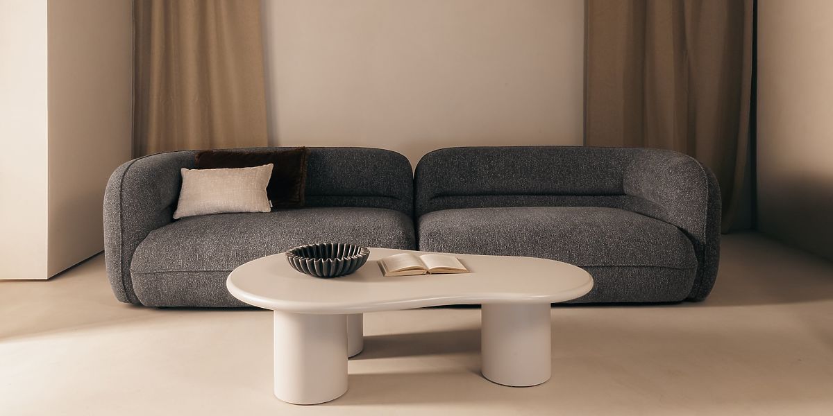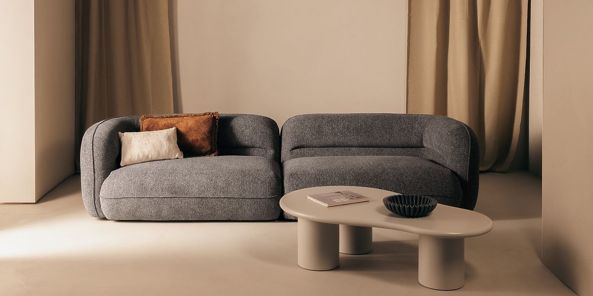 Sivi četverosjed Luvio s modernim zaobljenim dizajnom. .. više