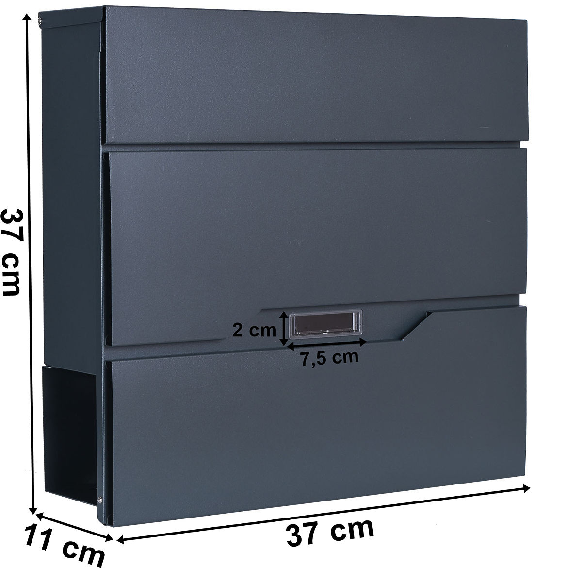 Stilski i funkcionalni poštanski sandučić koji kombinira moderan dizajn s trajnošću! Dimenzije 37 x 37 x 11 cm, čvrsti pocinčani čelik s praškastim premazom i otpornost na vremenske uvjete osiguravaju da je idealan za vanjsku i unutarnju upotrebu. Praktični prozorčić za adresu omogućuje trenutni pregled čekajuće korespondencije. Otvor za pisma 33 x 3,5 cm, dodatni prostor za novine i zaključavanje na ključ – sandučić Vidar je sigurnost i udobnost!
