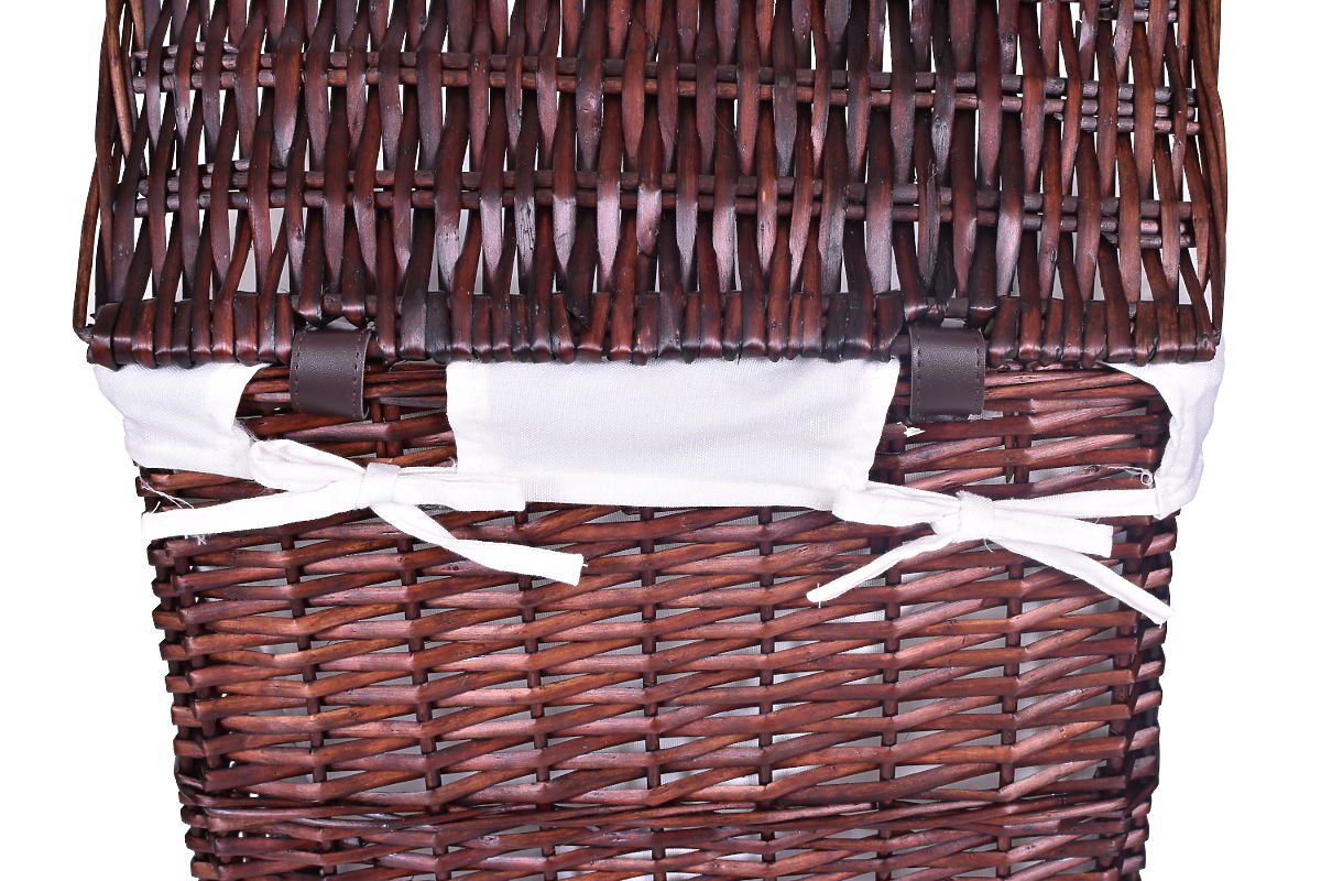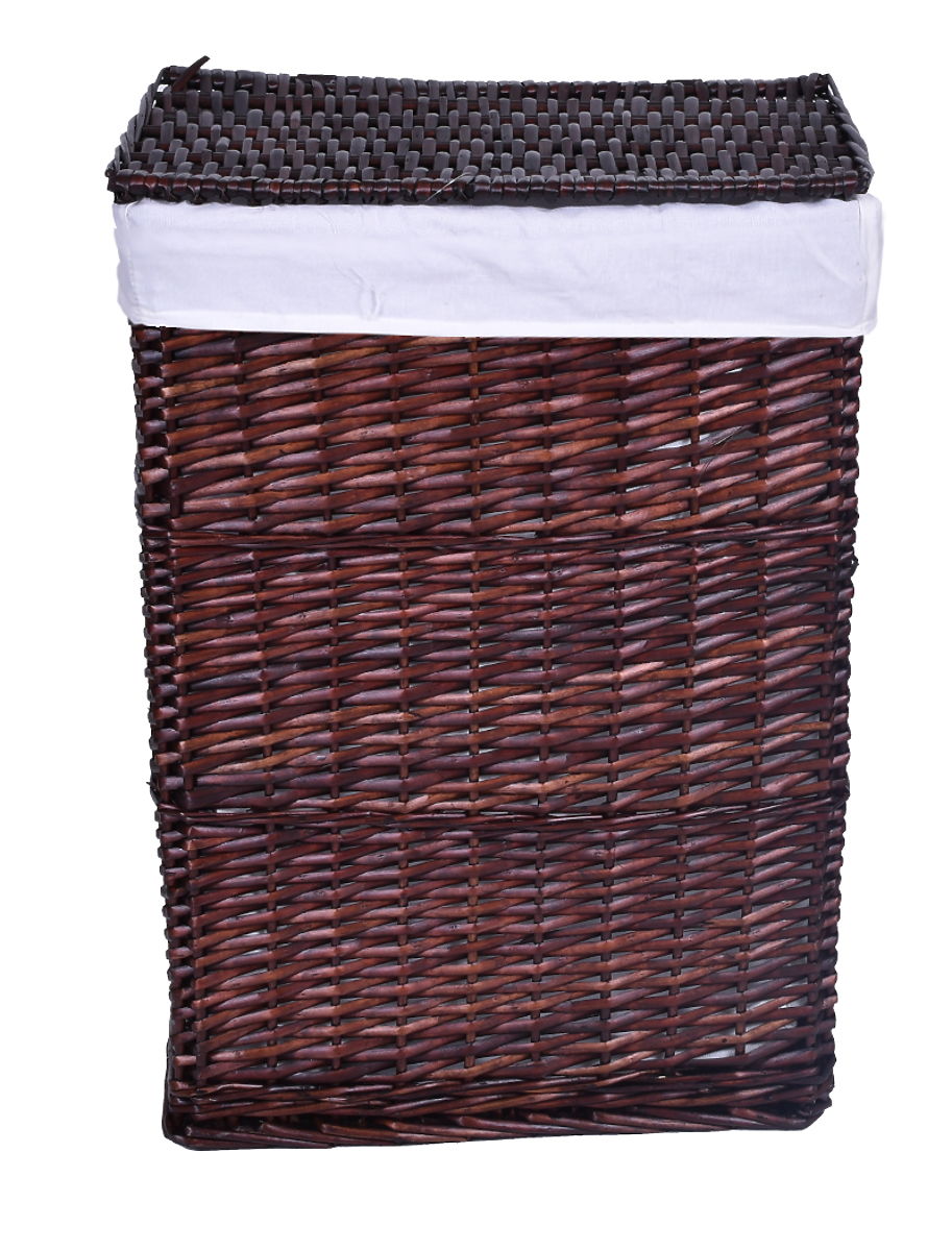 Pletena škrinja savršeno se uklapa u kupaonicu i druge prostorije, kao što su spavaća soba, dnevni boravak, dnevna soba. Vrlo je lijep dodatak koji dekoriranim prostorijama daje karakter. Proizvod je estetski izrađen od pruća i iznutra je dovršen lanenom oblogom. Poklopac ima elastične trake koje služe kao šarke.