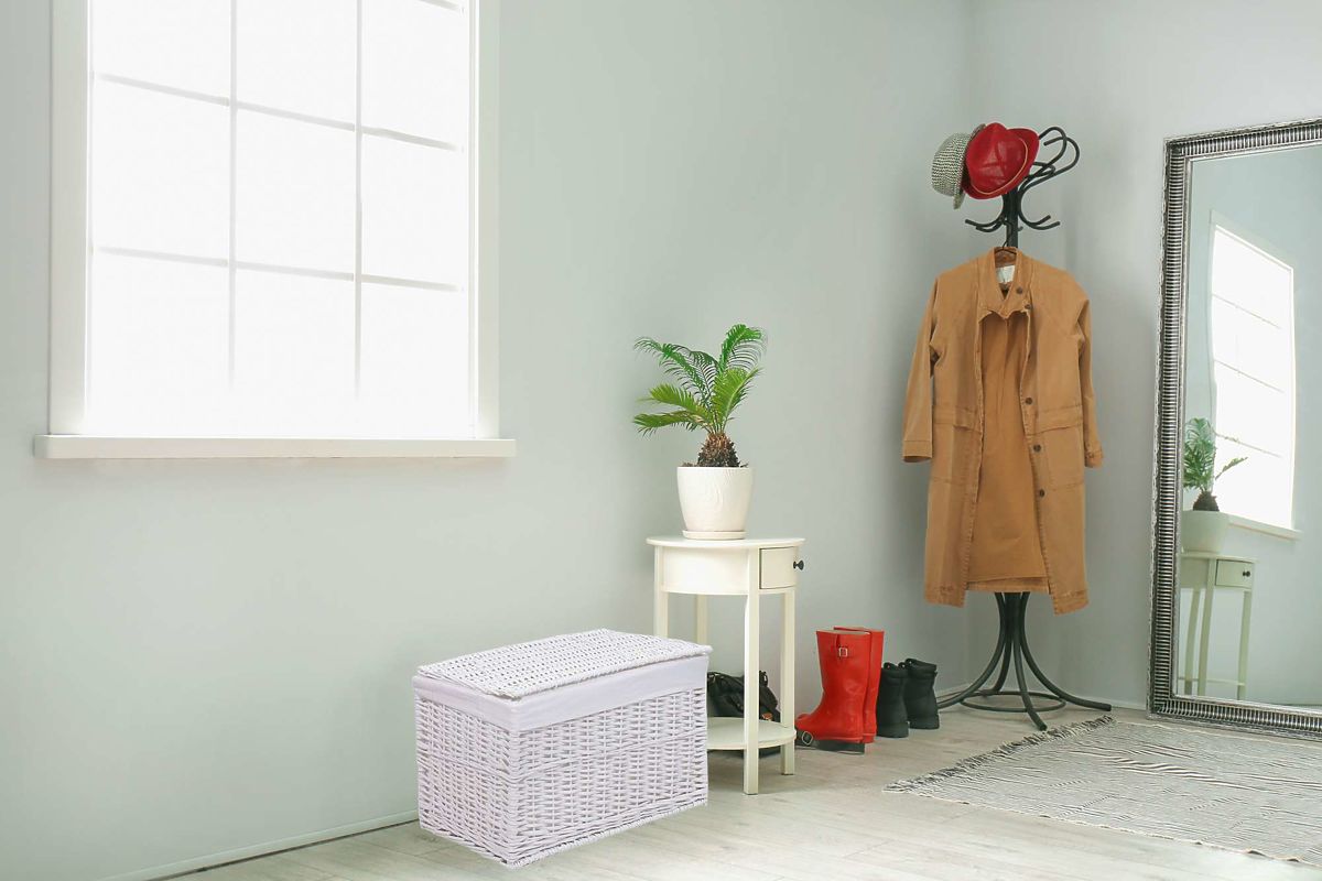 Pletena škrinja idealno se uklapa u kupaonicu i druge prostorije, poput spavaćih soba, dnevnih boravaka i soba. Vrlo je lijep dodatak koji dekoriranim prostorijama daje karakter. Proizvod je estetski izrađen od pruća, a unutrašnjost je završena lanenom oblogom. Poklopac ima elastične trake koje služe kao šarke.
