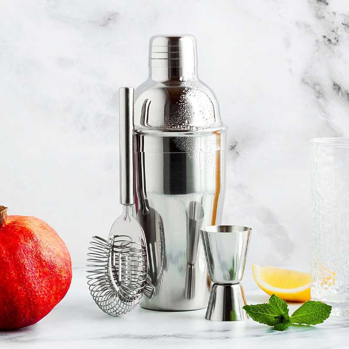 Set za barmene sastoji se od pet elemenata izrađenih od nehrđajućeg čelika. To omogućuje očuvanje autentičnog okusa sastojaka korištenih u piću. Pogodno kako za profesionalce, tako i za amatere barmenskog umijeća. Zahvaljujući alatima priloženim uz set, lako miješamo prave proporcije tekućina i odvajamo led ili veće komade voća, stvarajući nevjerojatne okusne i vizualne kompozicije. Set se lako može oprati u perilici posuđa. To je izvrstan izbor za bilo koju vrstu zabave ili večer u dvoje.