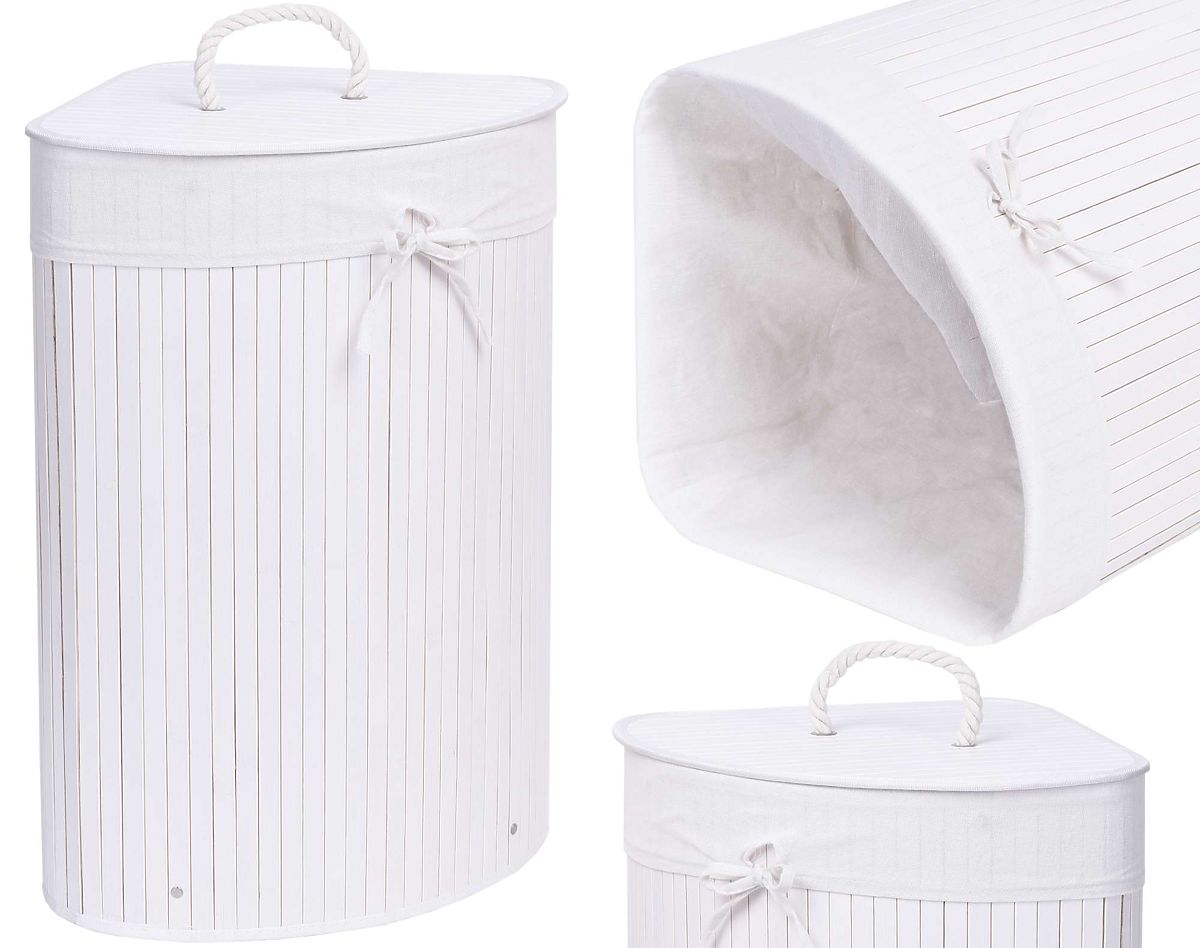 Bambusova kutna košara za rublje s bijelim poklopcem