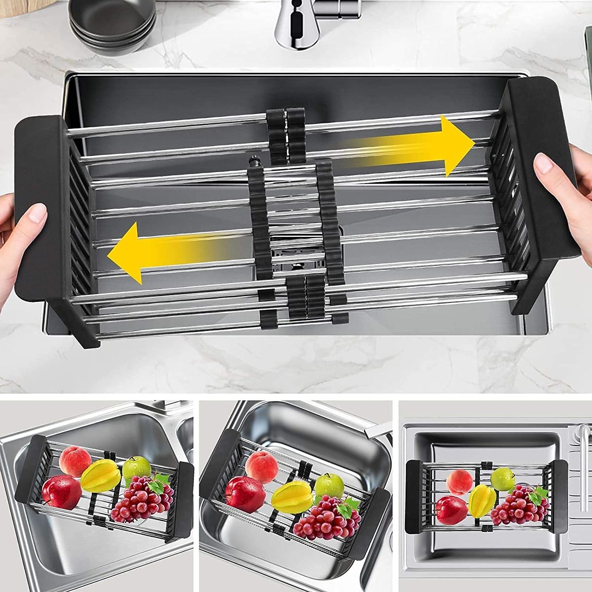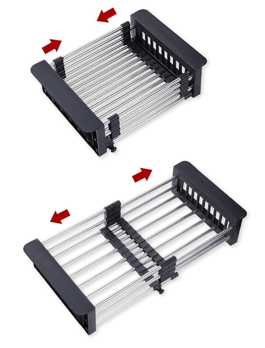 Praktičan i univerzalan ocjedivač za povrće i voće. Izrađen od čvrste plastike i nehrđajućeg čelika. Otporan na koroziju i vrlo izdržljiv. Teleskopska konstrukcija omogućuje prilagodbu željenoj veličini sudopera. Košarica je podesiva u rasponu od 28 cm do 43 cm.