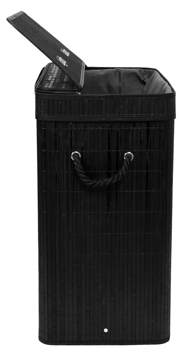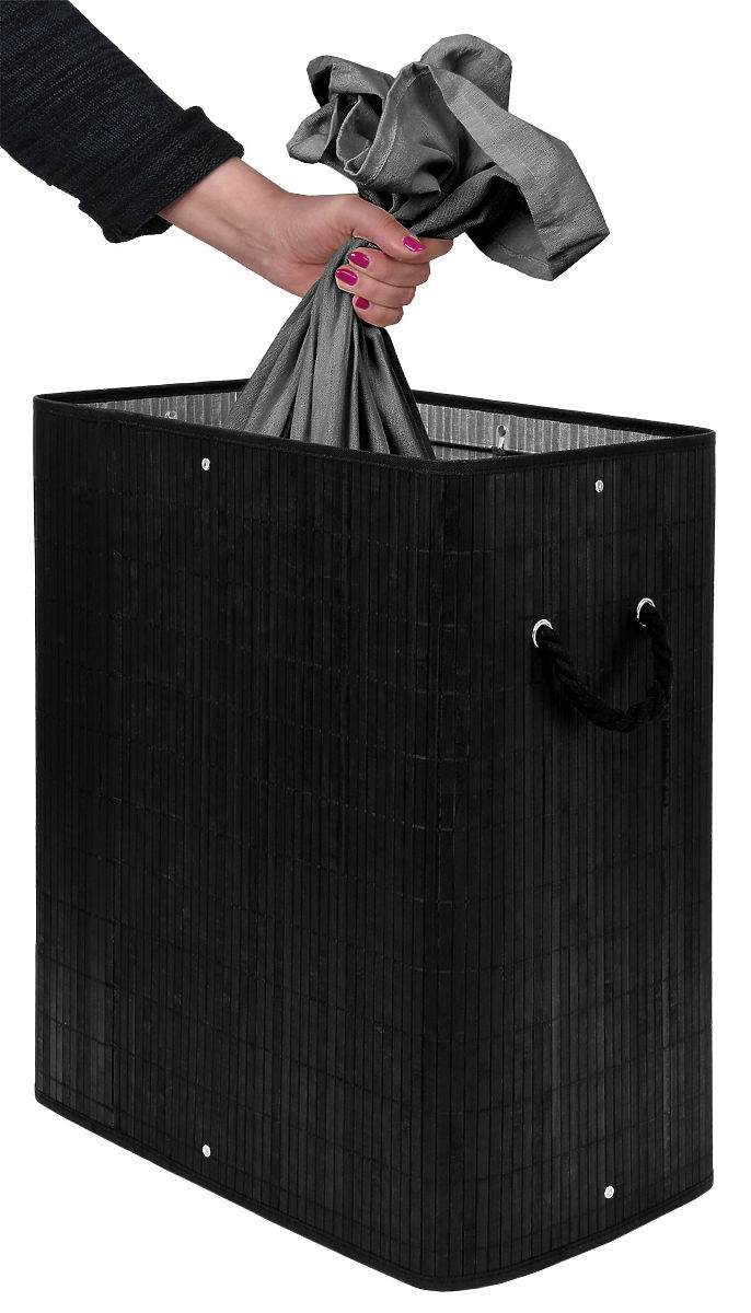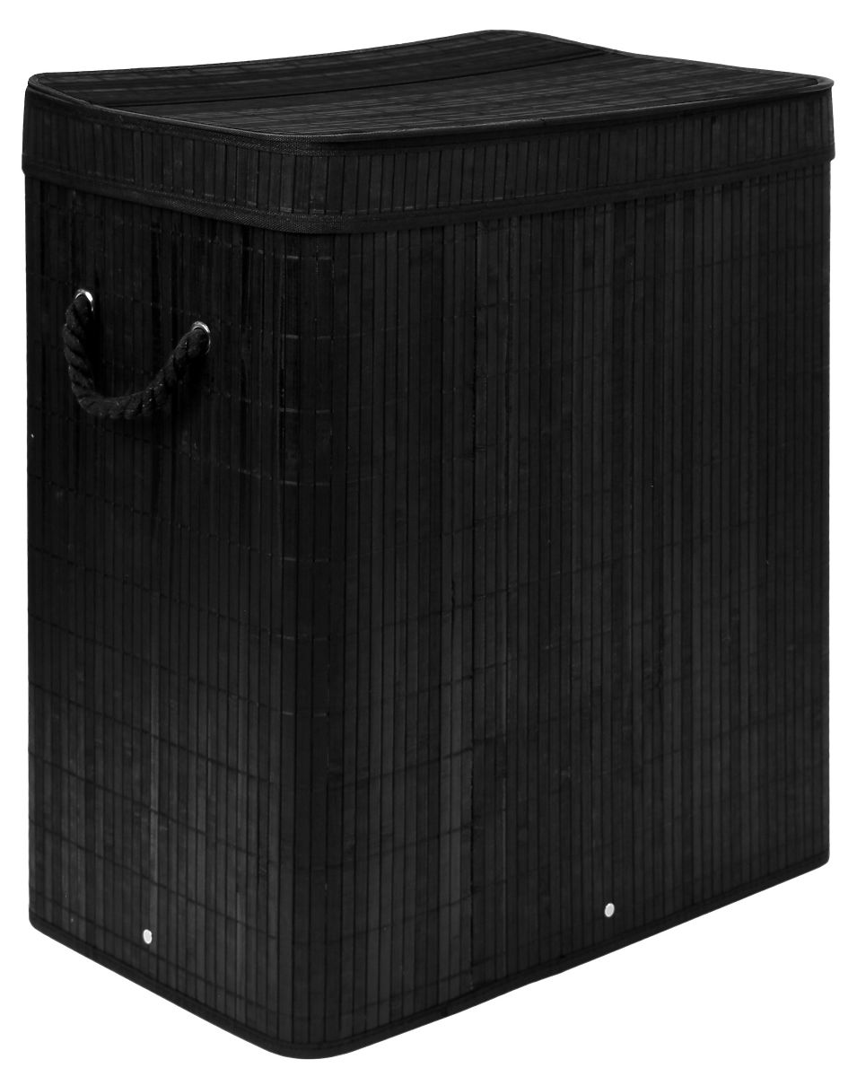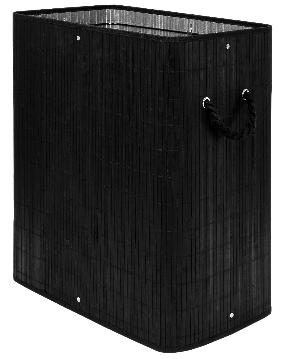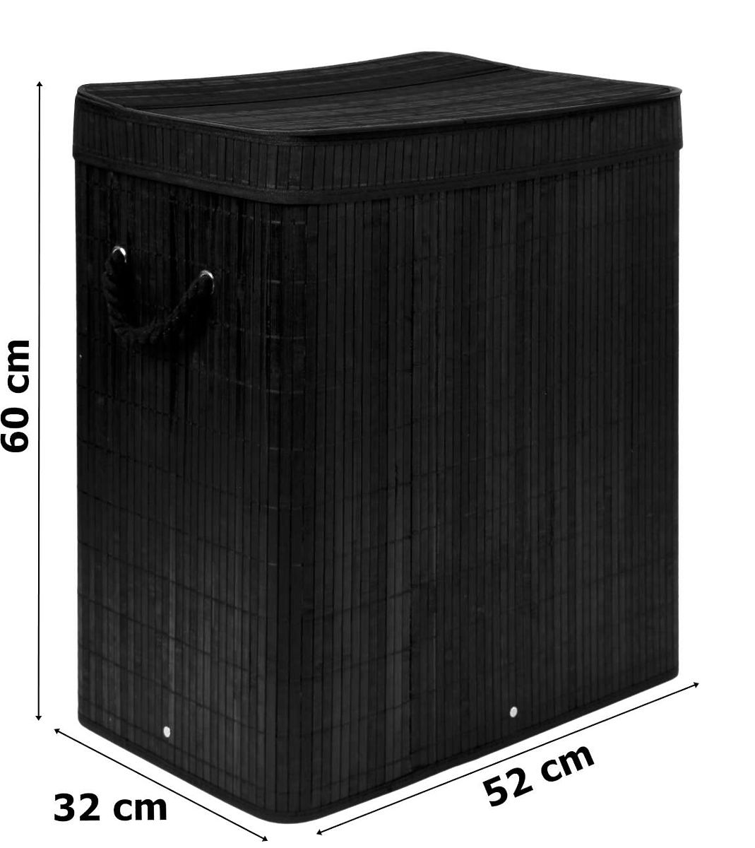 Bambusova košara za rublje s poklopcem 100L crna Kapacitet: 100 litara | Boja: Crna | 2 pregrade za svijetlo i tamno rublje