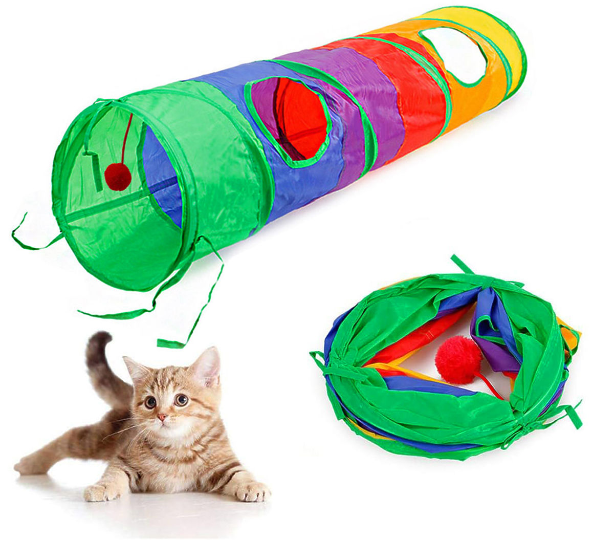 Tunel opruga za mačku je nezamjenjiva igračka koja će vašem ljubimcu pružiti mnogo sati radosti. Potiče njegovu znatiželju i potiče ga na aktivnost. Šuštavi zvukovi koje tunel proizvodi dodatno privlače pažnju mačića i potiču ih na igru. Tunel s dva prozora pruža izvrsnu zabavu i istovremeno može poslužiti kao sigurno skrovište u kojem vaša mačka može odmoriti i osjećati se sigurno. Bilo da ste kod kuće ili u vrtu, ovaj tunel će se savršeno uklopiti. Na jednoj strani ima dodatnu igračku za vješanje, završenu dlakavom lopticom, omiljenom igračkom malih predatora. Dodatna prednost je njegova veličina - 120 cm ne zauzima mnogo prostora u kući, a istovremeno pruža skrovište i zabavu za nekoliko mačaka istovremeno. Tunel se lako može sklopiti ravno i udobno transportirati bilo kada. Zauzima vrlo malo prostora zahvaljujući promjeru od 25 cm, tako da ga možete lako ponijeti sa sobom gdje god idete. To je idealan poklon za mačjeg ljubimca!