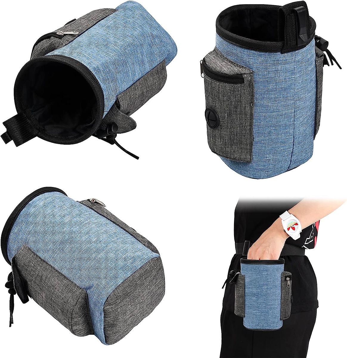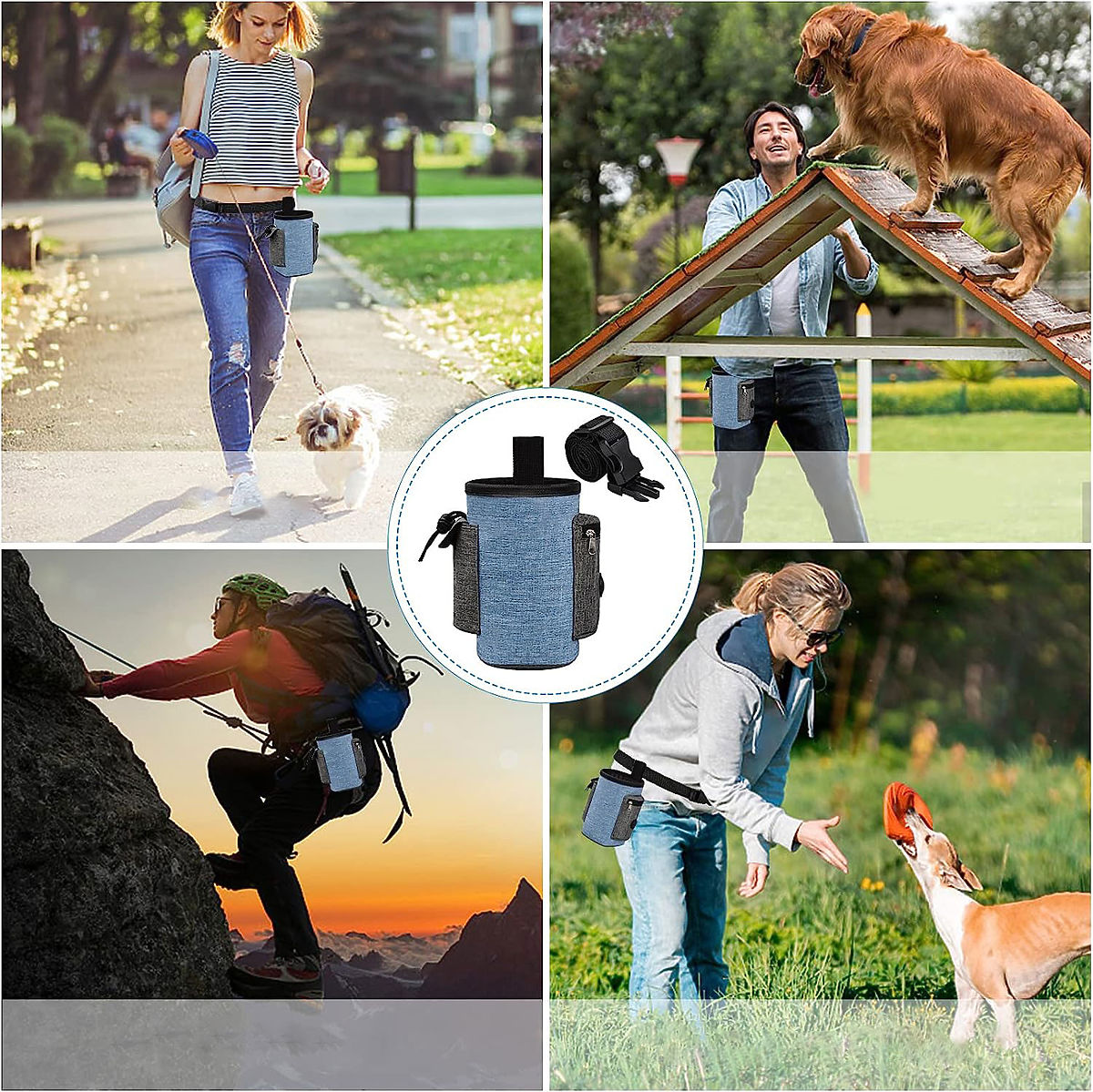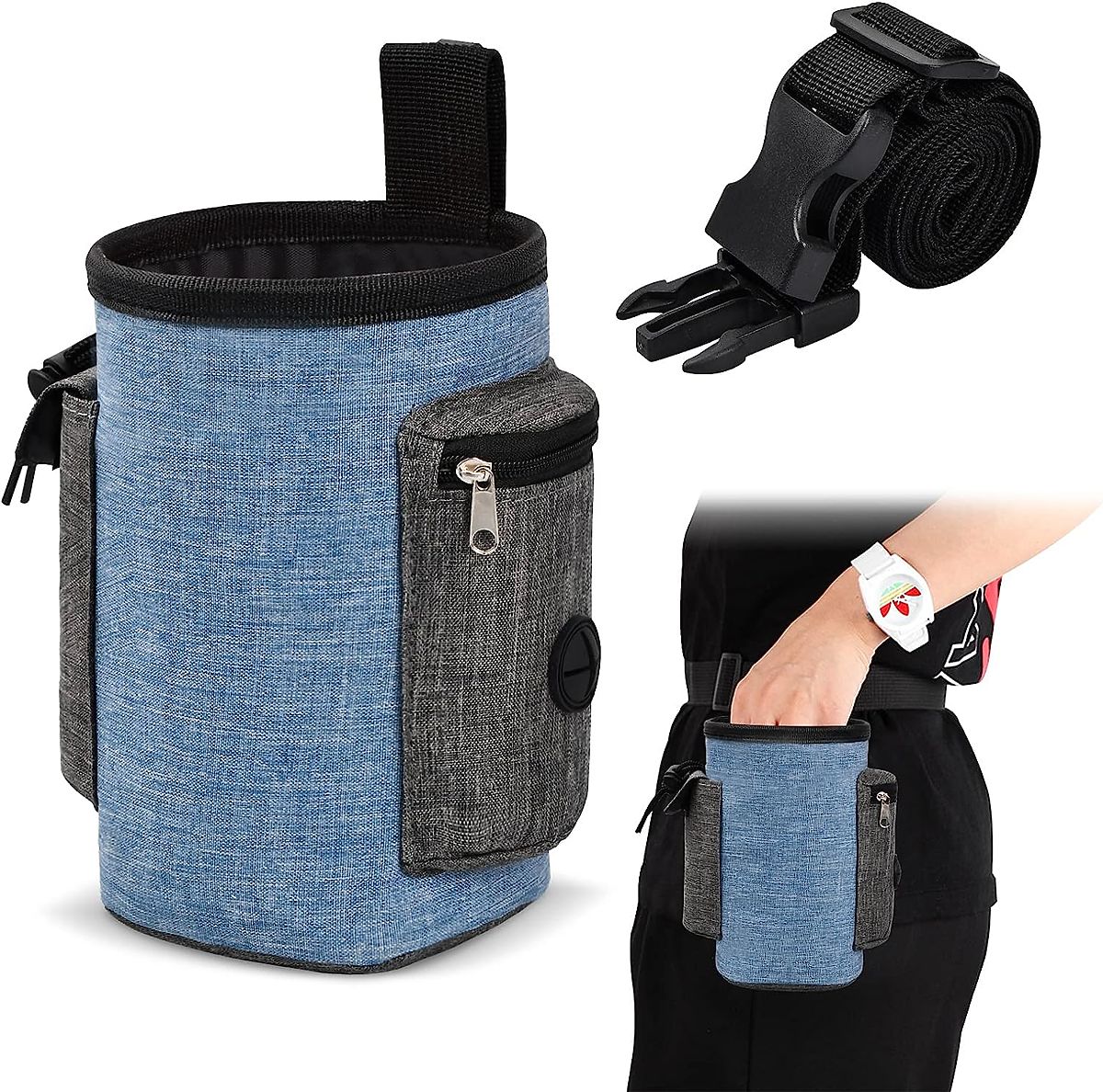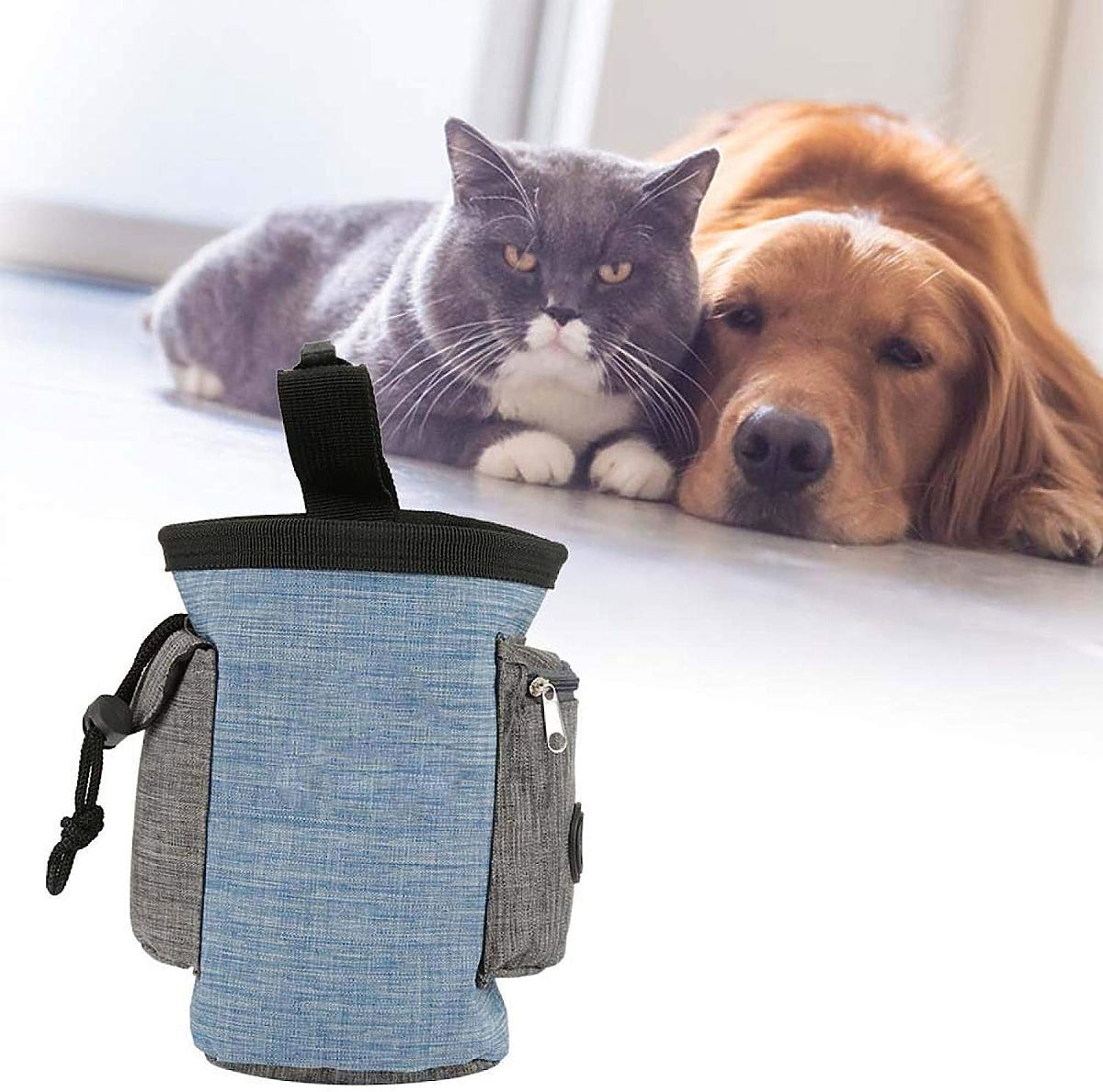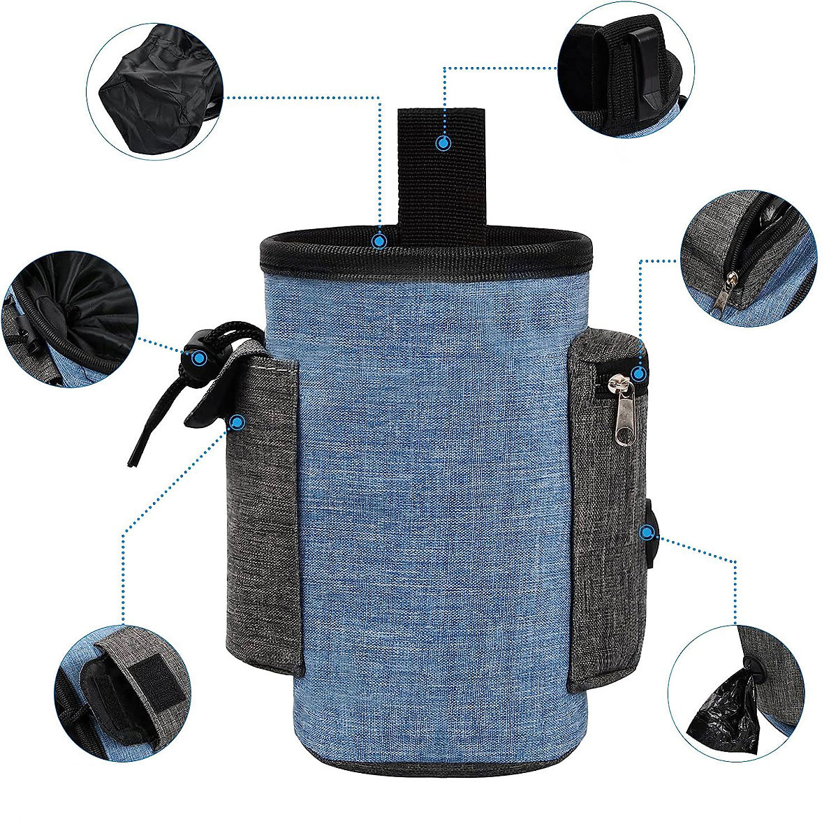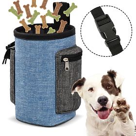 Izvanredna torba za pseće poslastice - visokokvalitetna, vodootporna i izdržljiva. Idealna za putovanja s ljubimcem, osiguravajući sigurne šetnje i putovanja. Veliki kapacitet, dodatni pretinci i džepovi za sitnice. Snažna kopča za remen, podesivi pojas za struk. Jednostavan pristup sadržaju, bez rizika od prosipanja hrane. Vodootporni lan - torba je zbog toga lagana, izdržljiva, lako se čisti.