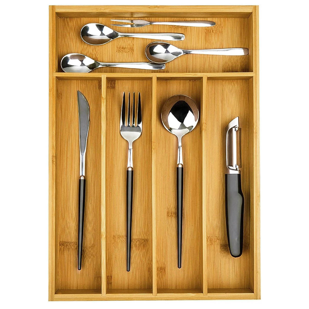 Dimenzije: 25 x 35 cm osiguravaju da stane u većinu ladica, nudeći 5 pretinaca za pribor i druge predmete. Nije samo mjesto za pribor, već i svestrani organizator za pohranu dodataka ili kozmetike u kuhinji, uredu ili kupaonici.