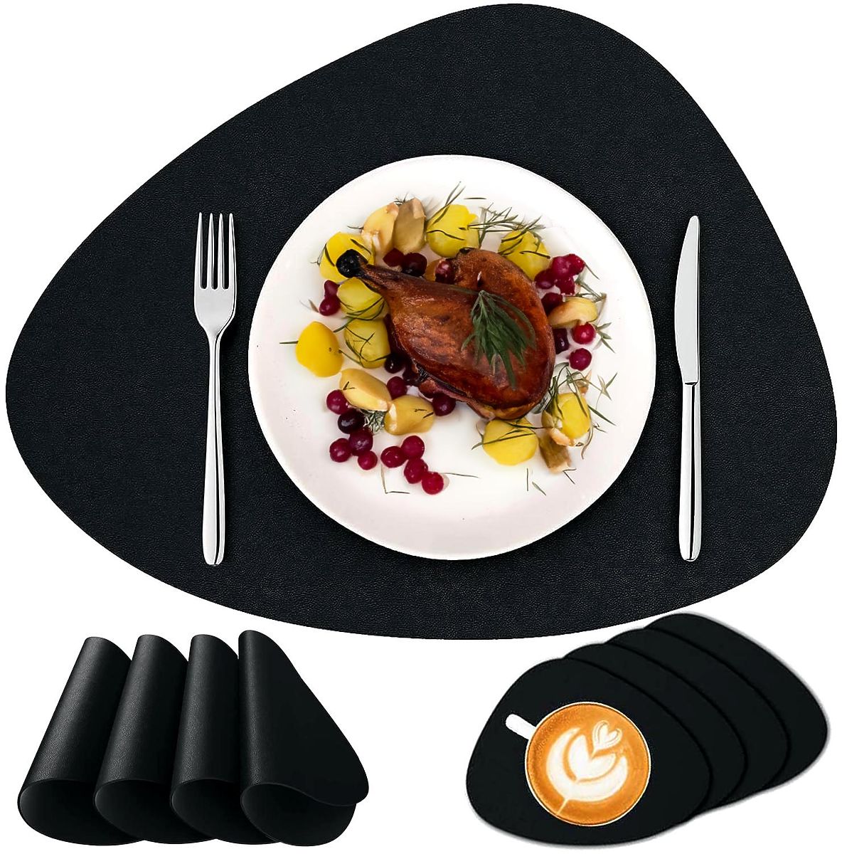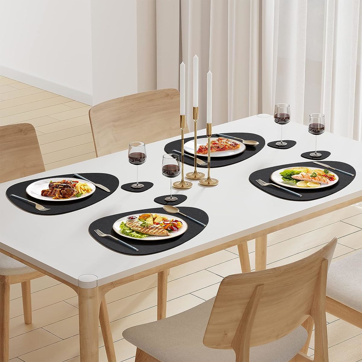✅ Estetika: Podmetači od materijala, posebno u crnoj boji, dodaju eleganciju i modernost svakom stolu, čineći ga izuzetnim dekorativnim elementom u blagovaonici, kuhinji ili dnevnom boravku.
